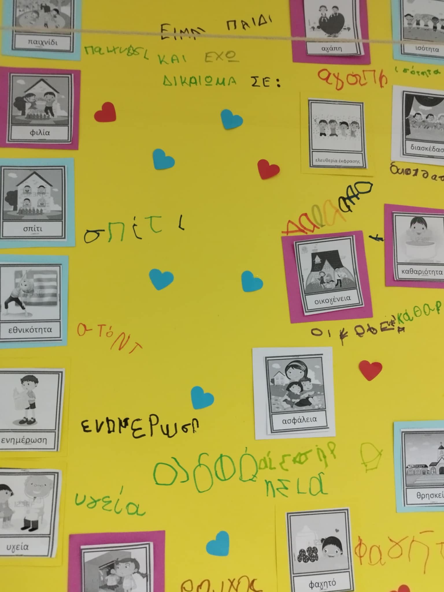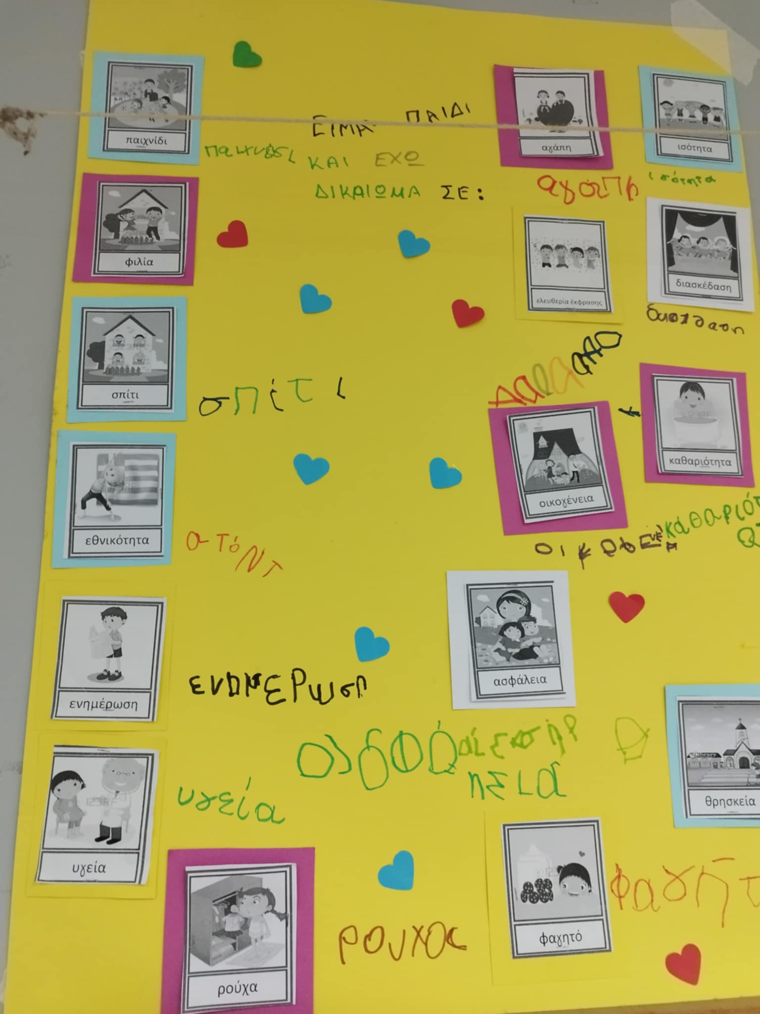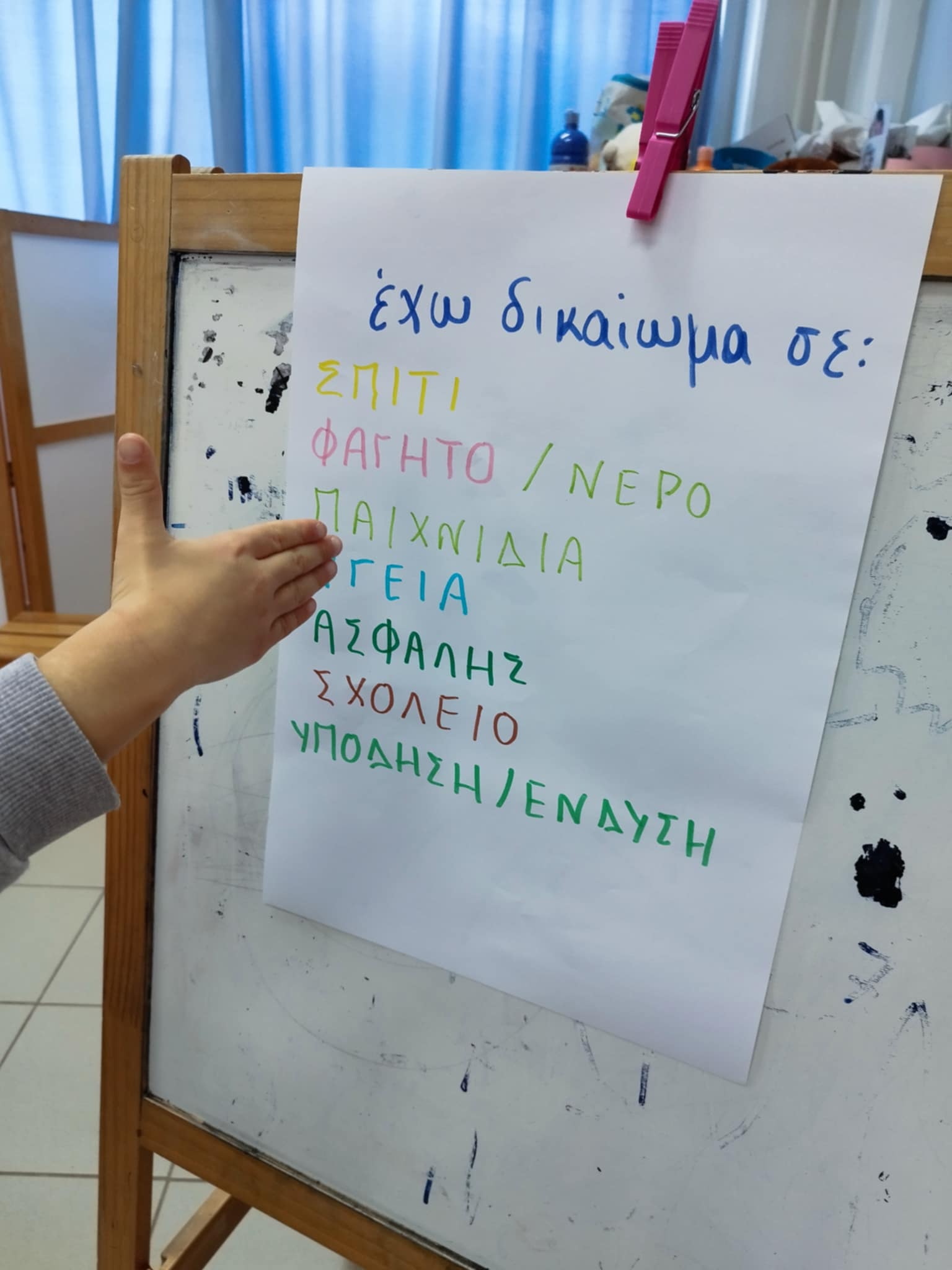 Χωριστήκαμε σε ομάδες και είδαμε τις κάρτες μας…Εξηγήσαμε τι μας δείχνουν και έγινε διαχωρισμός των απαραίτητων και μη αντικειμένων.. Βοήθησε πολύ το γεγονός οτι τα παιδιά ήδη γνώριζαν τα δικαιώματα ως ανάγκες!!