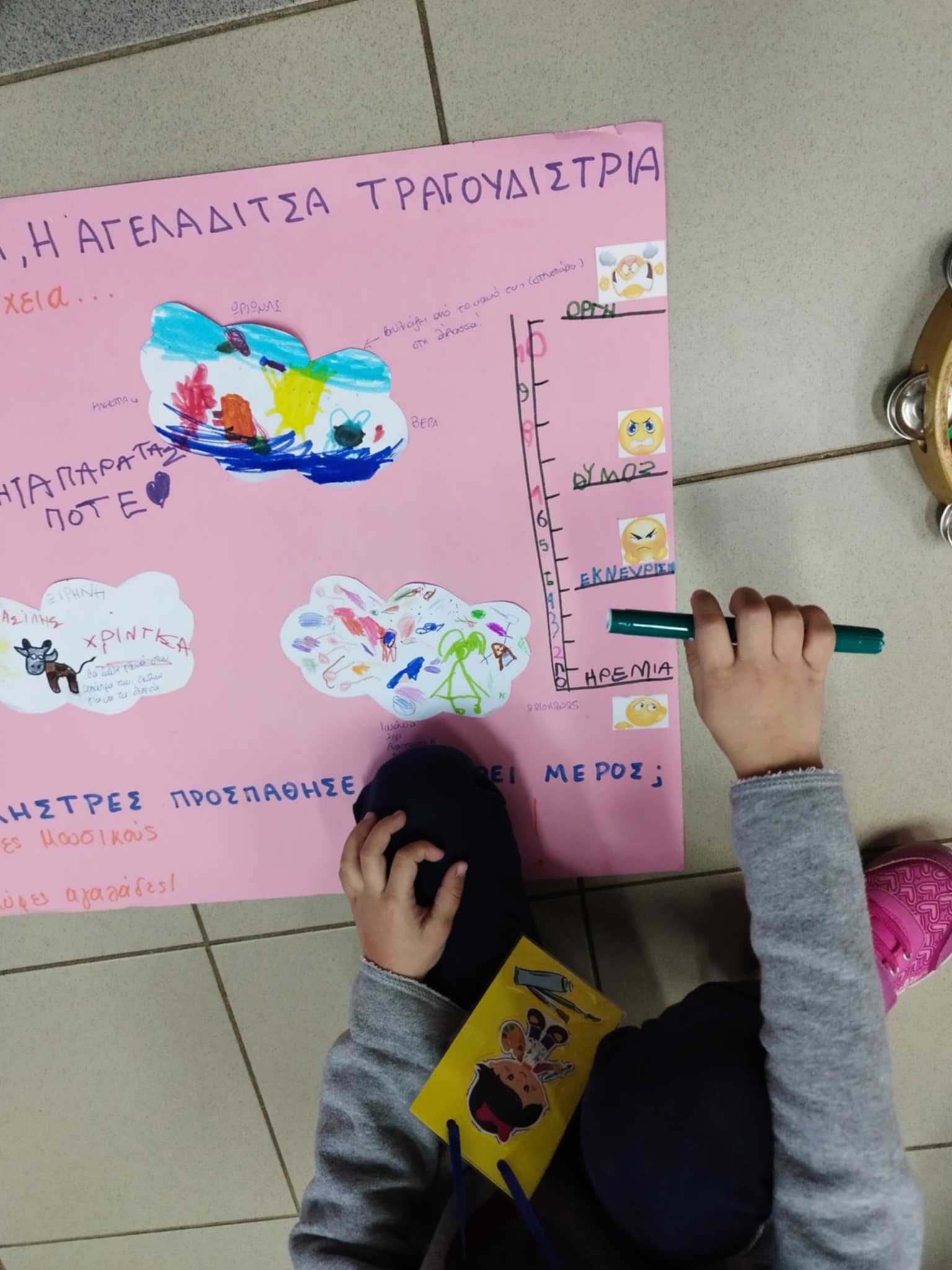 Με στόχο την καλλιέργεια της ενσυναίσθησης και της κατανόησης -αποδοχής του “άλλου” συζητήσαμε για τα συναισθήματα που μπορεί να ένιωσε η Σοφία η αγελαδίτσα. Μπήκαμε στη θέση της και εκφράσαμε τα συναισθήματα με το σώμα μας και τις εκφράσεις του προσώπου μας.