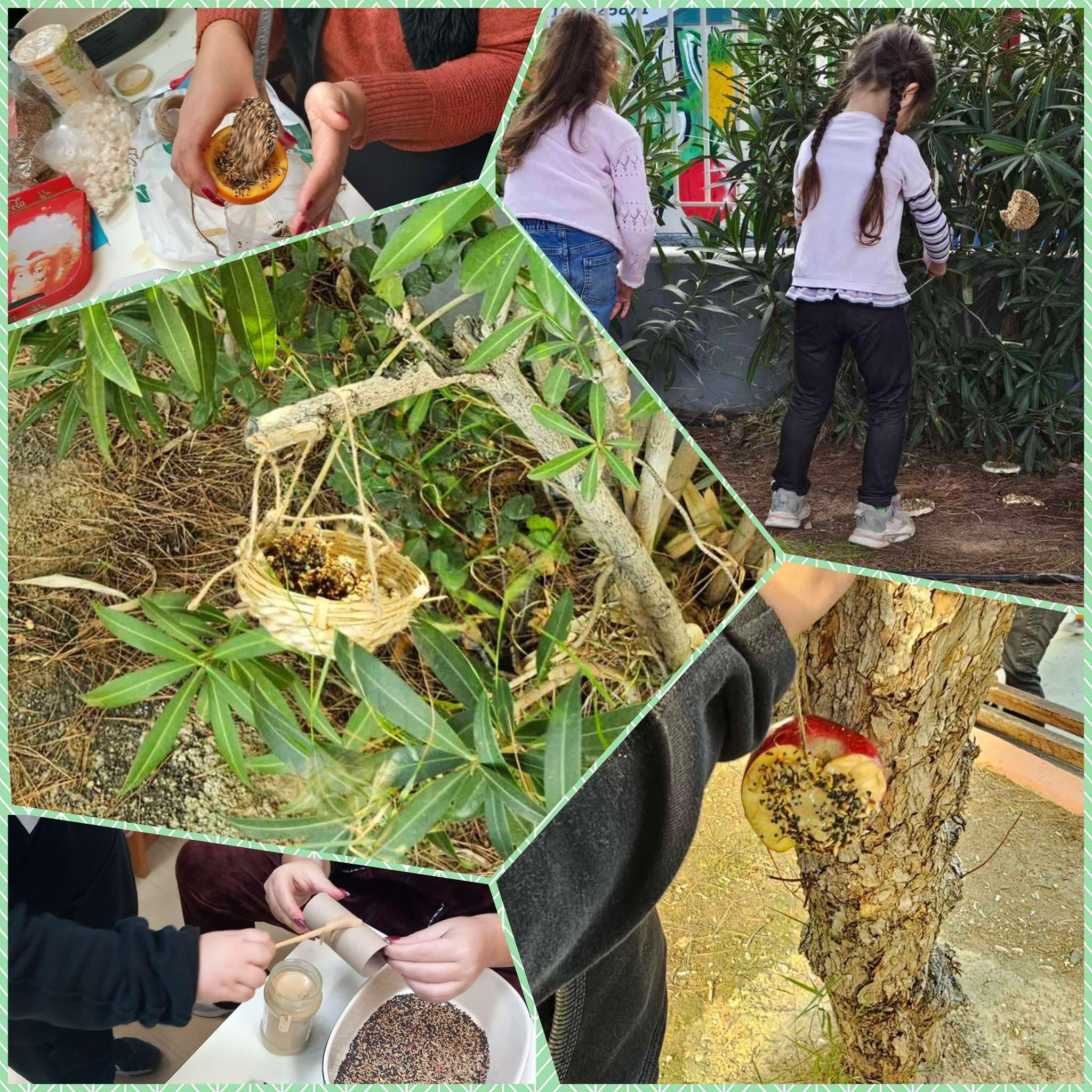 Ξεκινήσαμε την πρώτη μέρα, φτιάχνοντας «δεντρολιχουδιές» για τα πουλάκια που επισκέπτονται την αυλή μας! Τα παιδιά έμαθαν για τη σημασία της φροντίδας των πουλιών τον χειμώνα, ενισχύοντας έτσι την αγάπη τους για τη φύση και την κατανόηση του φυσικού περιβάλλοντος. Μπορείτε να δείτε περισσότερα σχετικά με αυτή μας τη δράση εδώ https://blogs.sch.gr/5nipagdi/2024/12/17/christoygenniatika-dentra-gia-toys-mikroys-mas-filoys-sti-fysi/.