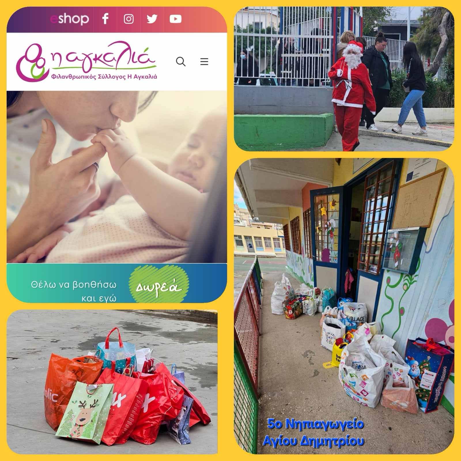 Φέτος, οι μικροί μας μαθητές έγιναν βοηθοί του Άγιου Βασίλη, γεμίζοντας τον σάκο του με δώρα αγάπης για τον Σύλλογο “ΑΓΚΑΛΙΑ”. Το νηπιαγωγείο μας σε συνεργασία με τις οικογένειες των μαθητών μας συγκέντρωσε και πρόσφερε δώρα για να χαριστούν στα παιδιά που φιλοξενεί ο Σύλλογος, ρούχα για όλες τις ηλικίες, αλλά και τρόφιμα, πάνες και άλλα είδη πρώτης ανάγκης. Εκπρόσωποι του Συλλόγου επισκέφτηκαν το σχολείο μας, παρέλαβαν όλα όσα συγκεντρώσαμε και μίλησαν στα παιδιά για τη σημασία της αγάπης και της αλληλεγγύης. Τα παιδιά μας διαπίστωσαν για μια ακόμη φορά πώς οι πράξεις καλοσύνης μπορούν να προσφέρουν χαμόγελα και ελπίδα σε όσους το έχουν ανάγκη.