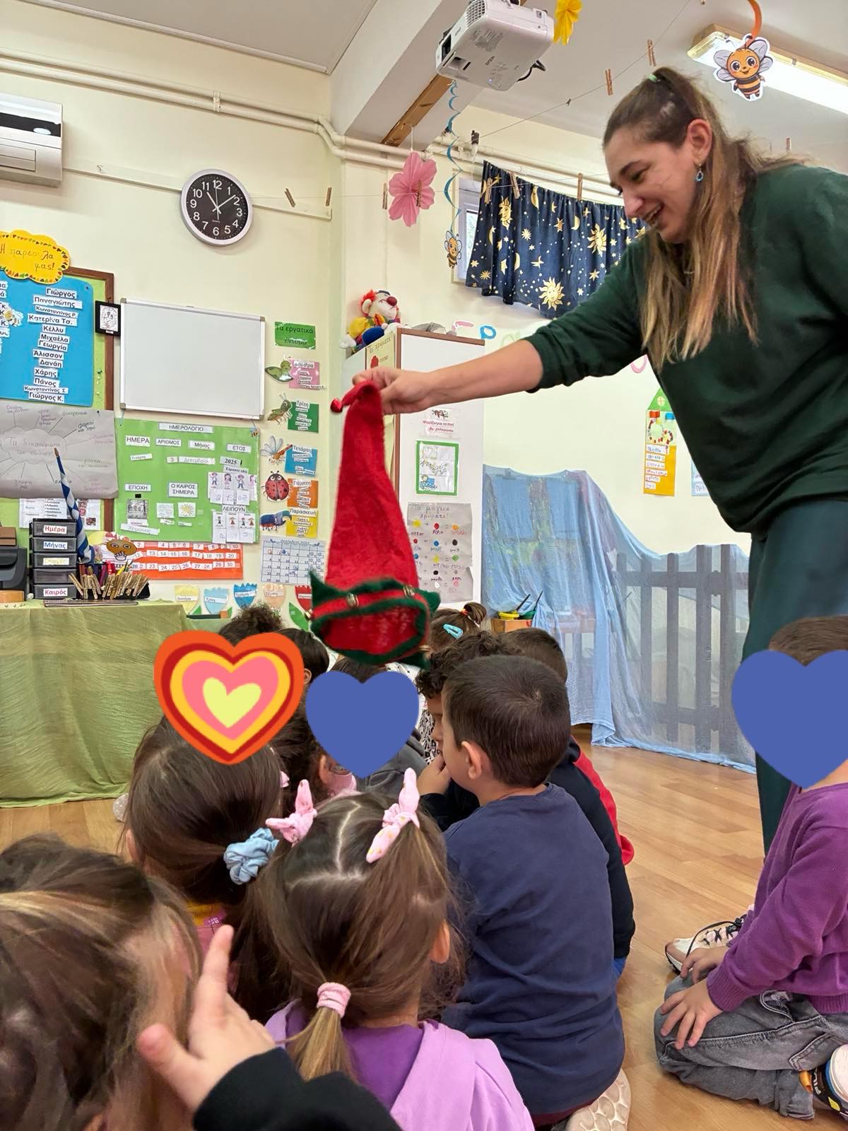 Ευχαριστούμε θερμά την κα Μαρία Μασσάρου, μητέρα νηπίου και εμψυχώτρια/εκπαιδεύτρια θεατρικού παιχνιδιού που την Πέμπτη 4 Δεκεμβρίου επισκέφθηκε το σχολείο μας. Κάθε τμήμα ξεχωριστά έκανε νοερά ένα μαγικό ταξίδι στο χωριό του Αη-Βασίλη με τη βοήθεια ενός γλυκύτατου βοηθού-εμψυχωτή (κα Μαρία)! Κατά τη διάρκεια του θεατρικού παιχνιδιού, έγινε αφήγηση του παραμυθού “Τα πρώτα Χριστούγεννα του Αη-Βασίλη”. Κάθε ομάδα στη συνέχεια, έφτιαξε δώρα και έκανε δουλειές για να ξεκουράσει τον αγαπημένο Άγιο, δραματοποίησε ένα δώρο-έκπληξη για εκείνον και είδε το Βόρειο Σέλλας! Τα παιδιά ενθουσιάστηκαν και πέρασαν υπέροχα, το ίδιο και οι εκπαιδευτικοί! Ευχαριστούμε πολύ κα Μαρία!
