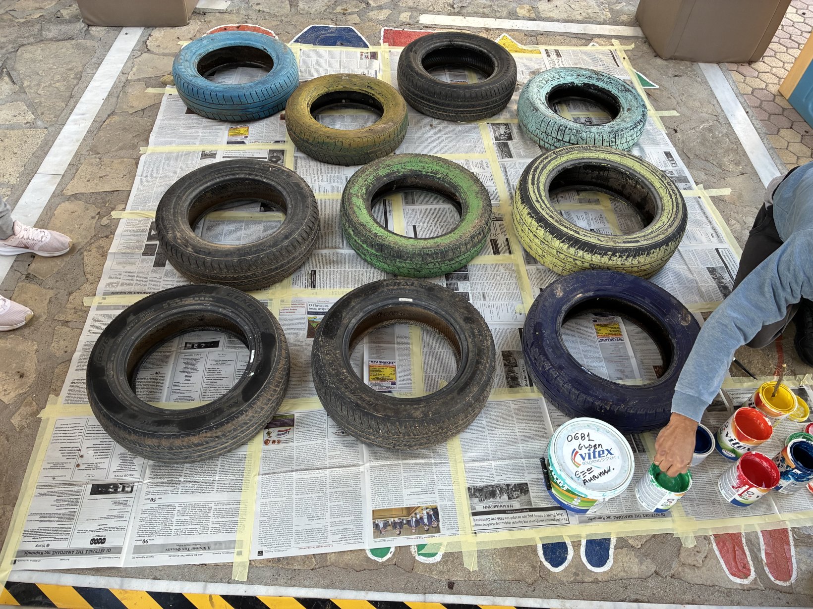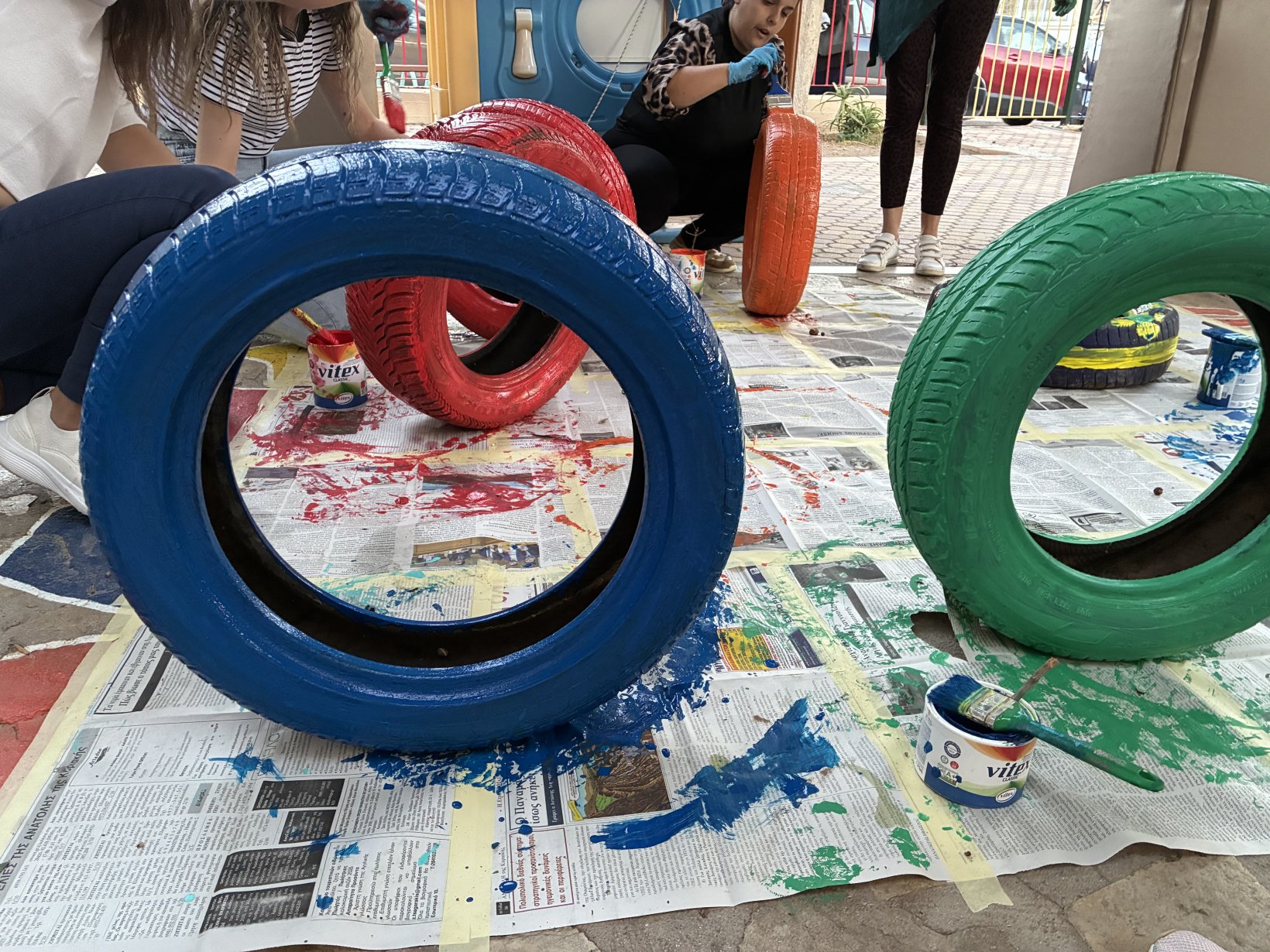 Επίσης ευχαριστούμε την κα Μαρία Πρίφτη, την κα Εμμανουέλα Καμαράτου, την κα Τσετσελάκη Μαρία, τον κο Γιώργο Καπετανάκη και τον κο Γιώργο Βαρδαβά , γονείς μαθητών/τριών μας που συμμετείχαν εθελοντικά στην δράση: «Βάψιμο ελαστικών στην αυλή μας» στο πλαίσιο του σχεδίου δράσης της σχολικής μας μονάδας «Παίζω, τρέχω και γελώ στην αυλή δημιουργώ!»