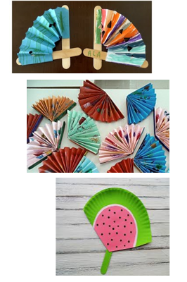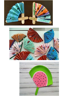 Όταν έρθουν οι πολύ ζεστές ημέρες του καλοκαιριού, σας προτείνουμε να κατασκευάσετε τις δικές σας βεντάλιες με μια απλή σελίδα και με δύο γλωσσοπίεστρα ξύλινα ή με χάρτινο πιάτο που έχουν προηγουμένως ζωγραφίσει τα παιδιά.