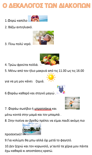Για να περάσουμε καλά στις διακοπές και να είμαστε ασφαλείς καλό είναι να θυμόμαστε τον παρακάτω δεκάλογο των διακοπών!