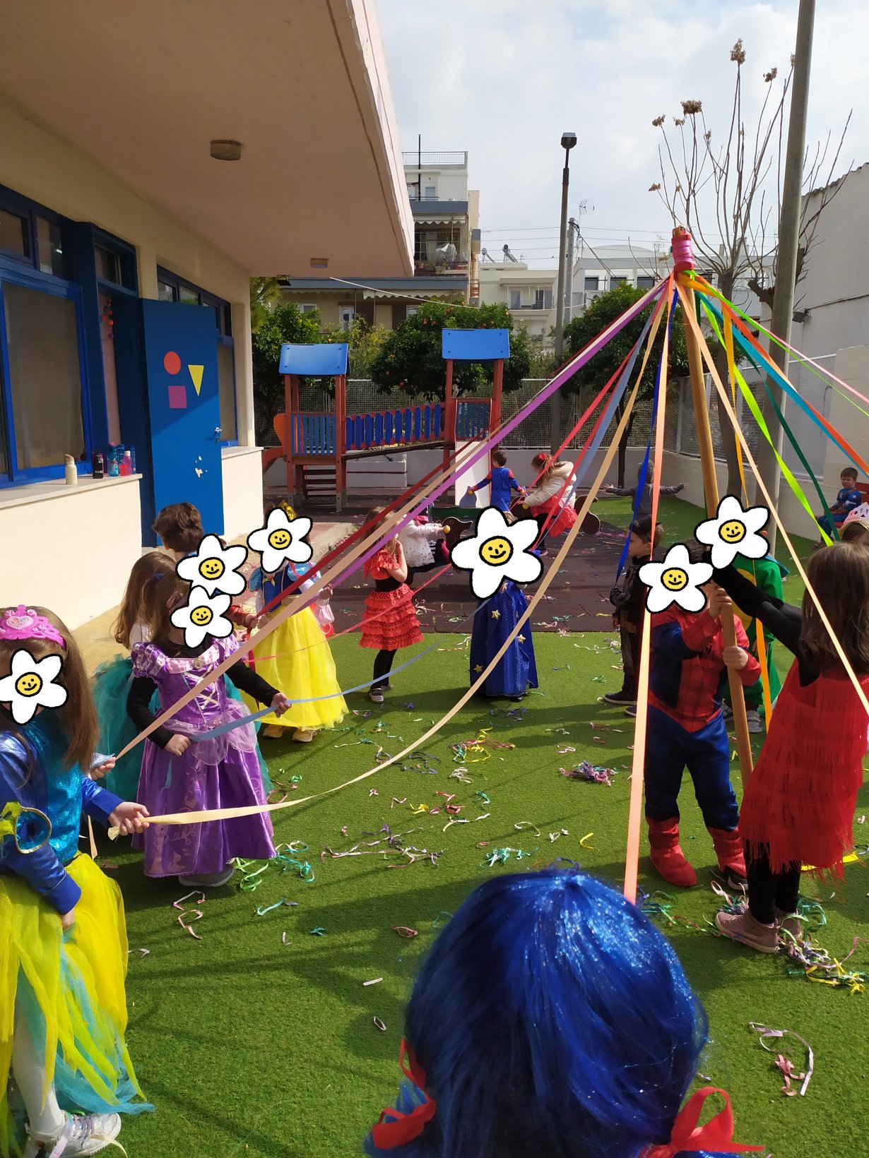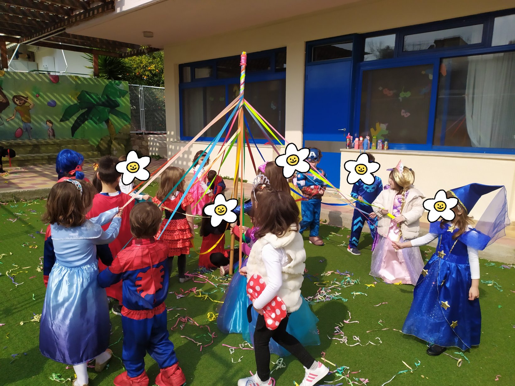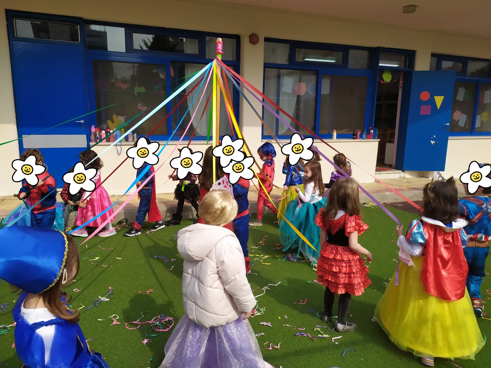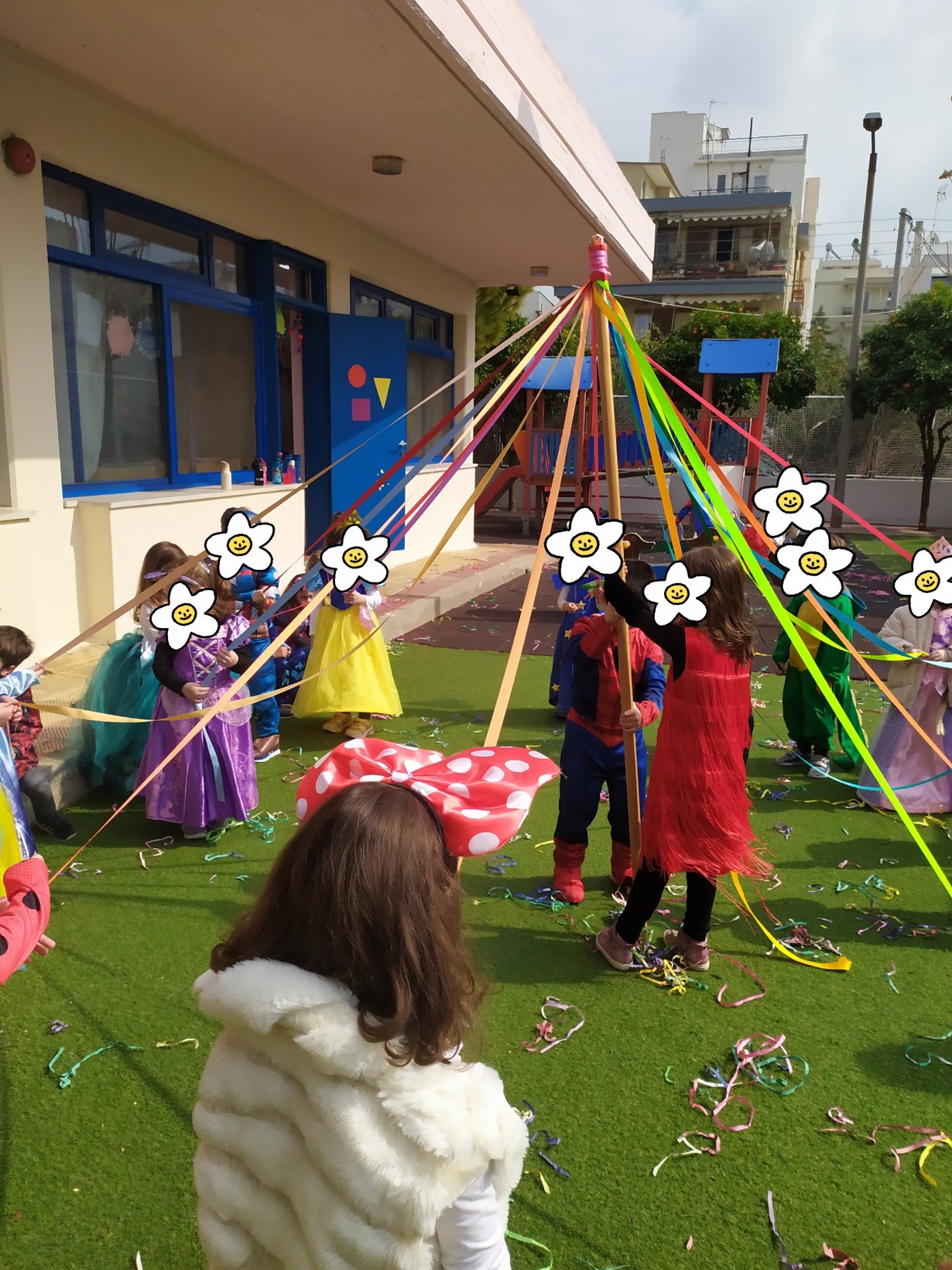 Χορός με το παραδοσιακό γαϊτανάκι έξω στην αυλή του Νηπιαγωγείου.