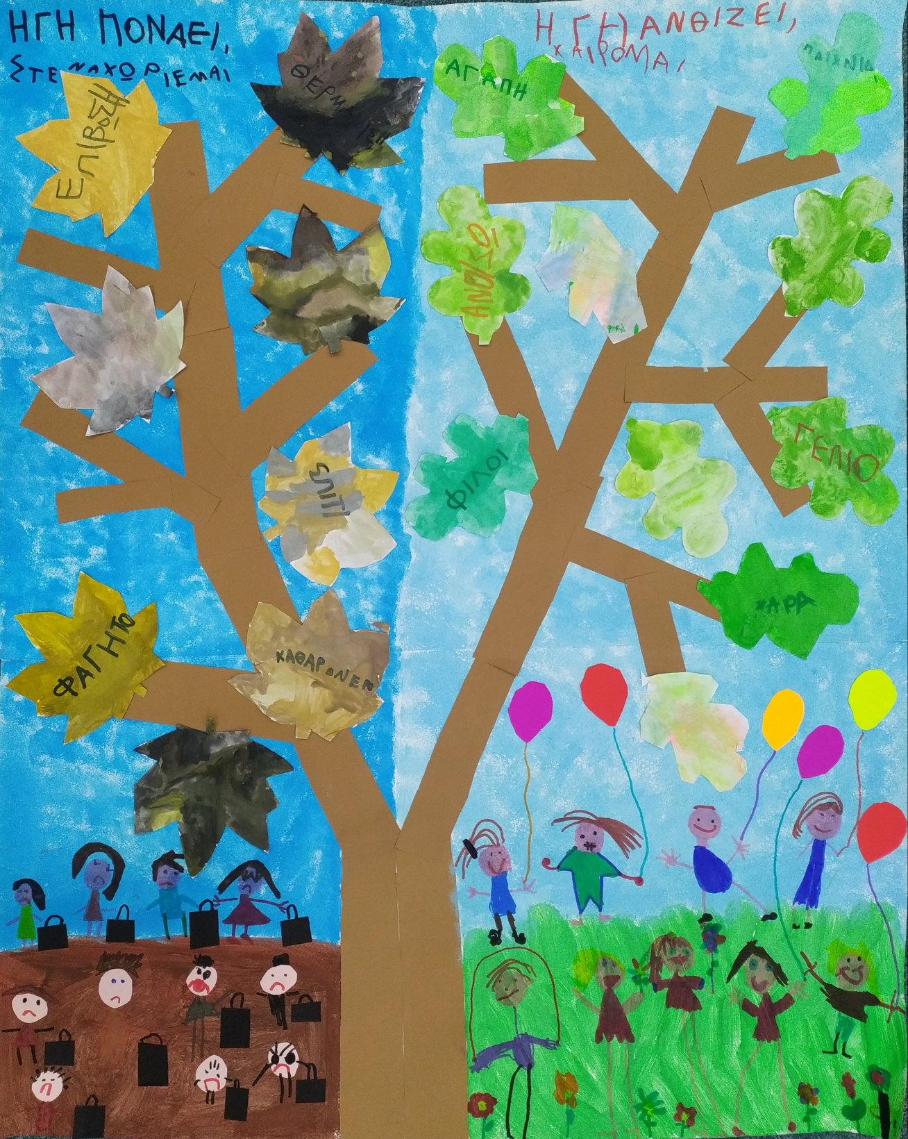 Τα μηνύματα των παιδιών: “Η ΓΗ ΠΟΝΑΕΙ, ΣΤΕΝΑΧΩΡΙΕΜΑΙ” και “Η ΓΗ ΑΝΘΙΖΕΙ, ΧΑΙΡΟΜΑΙ”