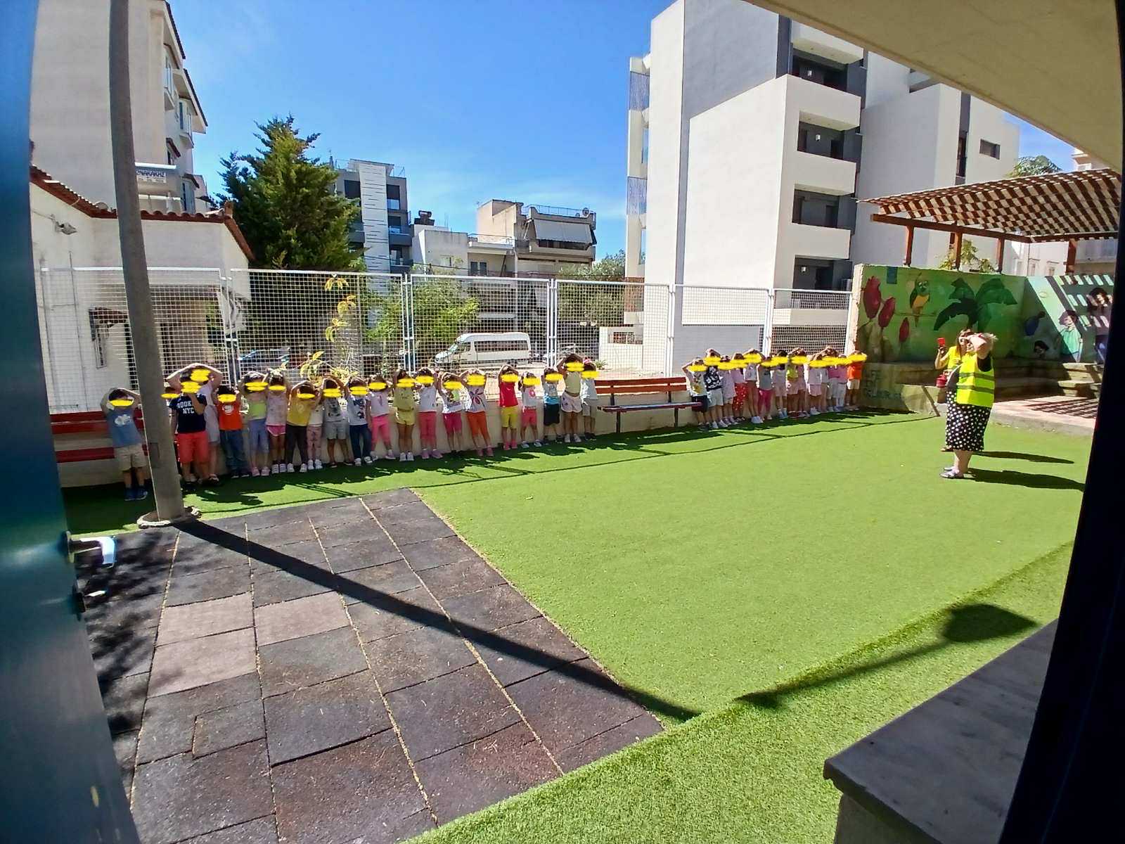 Η πρώτη μέρα λειτουργίας του Νηπιαγωγείου μας έφτασε, οι πόρτες άνοιξαν και γέμισαν χαρούμενες παιδικές φωνές. Φεύγοντας όλα τα παιδιά κρατούσαν ένα δωράκι καλωσορίσματος με έφτιαξαν με πολλή αγάπη οι νηπιαγωγοί τους. Το πολύχρωμο δωράκι ήταν ένα χάρτινο πινέλο με ένα σακουλάκι που περιείχε ένα μπαλόνι, μια κηρομπογιά, μία πλαστελίνη και μία γόμα σε σχήμα ζώου. Το πιο σημαντικό όμως για εμάς είναι τα λόγια πάνω στο πινέλο