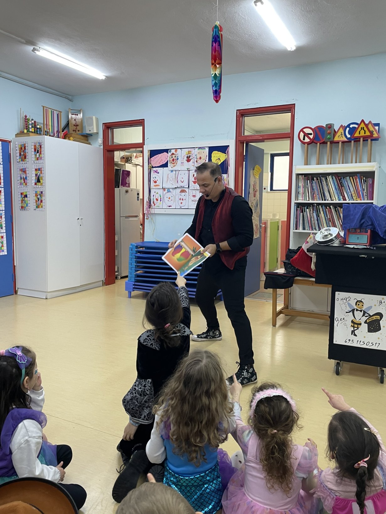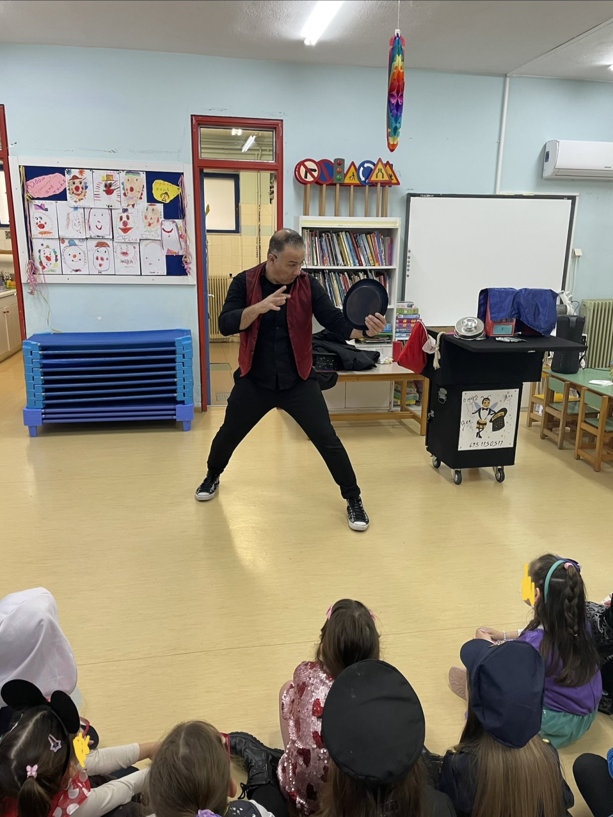 Ξεχωριστή νότα στη γιορτή έδωσε η παρουσία ταχυδακτυλουργού, που με τα εντυπωσιακά του κόλπα μάγεψε μικρούς και μεγάλους και χάρισε στιγμές έκπληξης και γέλιου.