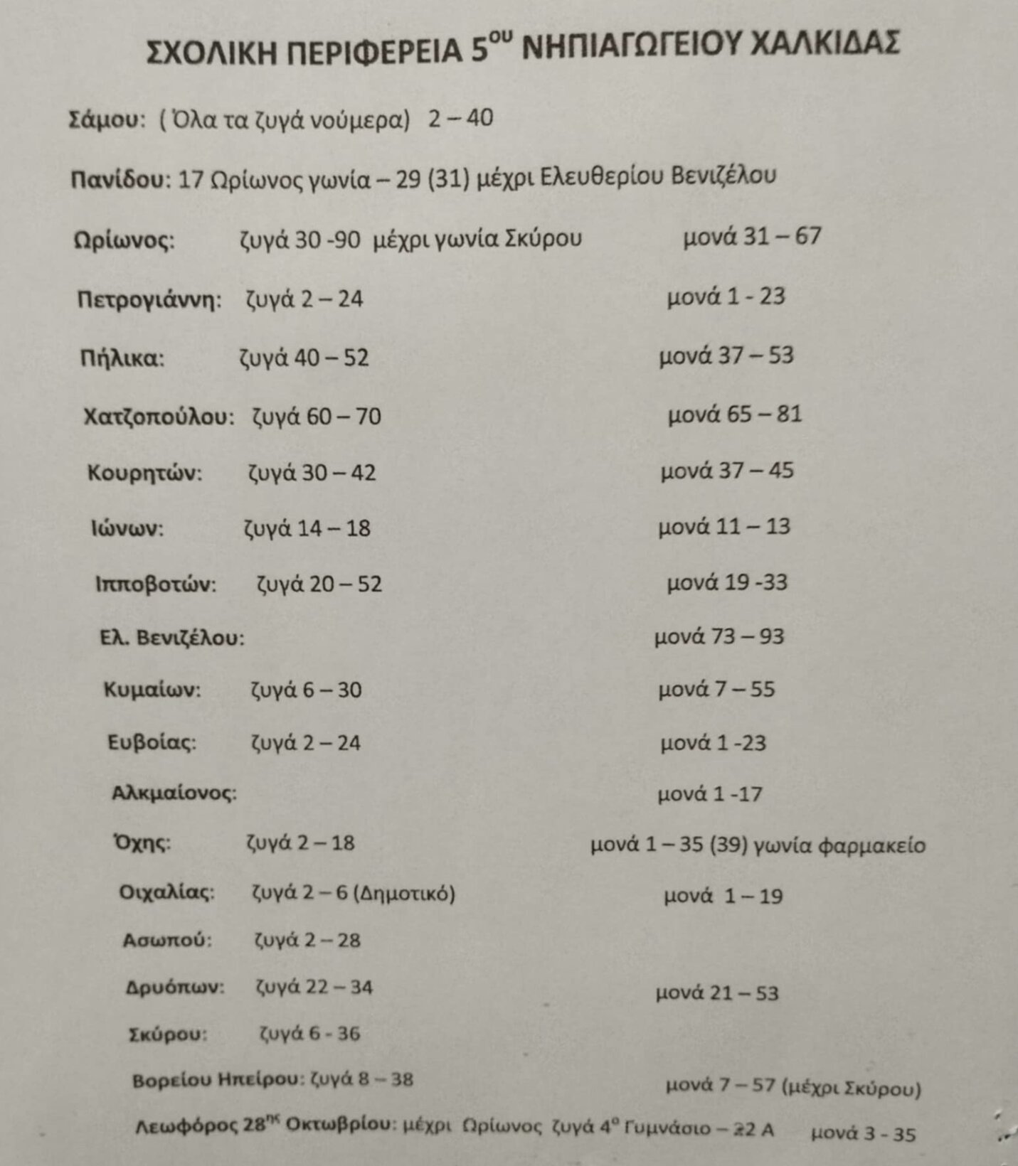 Σχολική περιφέρεια 5ου Νηπιαγωγείου Χαλκίδας Δημοσιεύθηκε 27 Φεβρουαρίου 2025 από τον/την 5ο ΝΗΠΙΑΓΩΓΕΙΟ ΧΑΛΚΙΔΑΣ Στο 5ο Νηπιαγωγείο Χαλκίδας εγγράφονται τα παιδιά που η διεύθυνση κατοικίας των γονέων τους ,ανήκει στην παρακάτω περιφέρεια:
