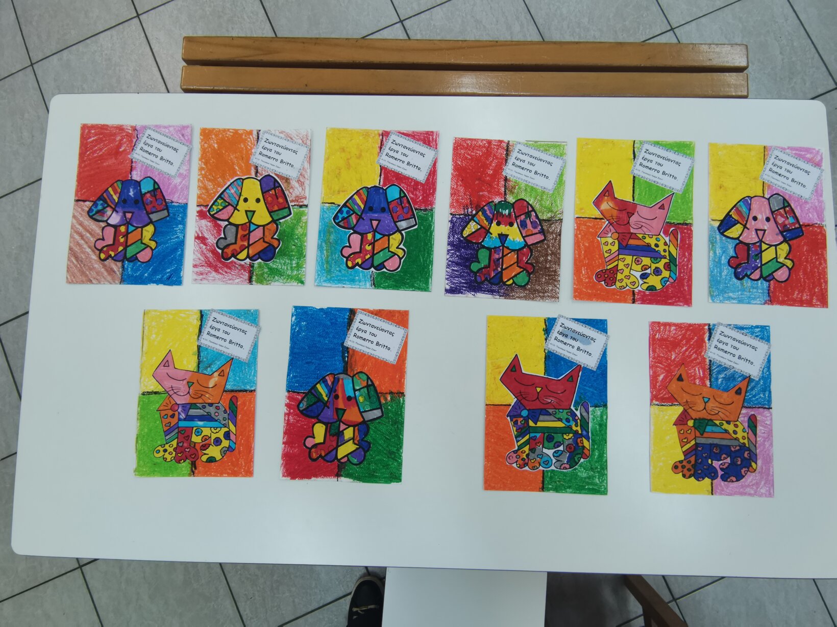 Ύστερα από τη δράση κοινωνικής ευαισθητοποίησης με το εκπαιδευτικό πρόγραμμα του Δήμου Παλλήνης με τίτλο « Μαθαίνω για τα αδέσποτα- Οι τετράποδοι φίλοι μας» μελετήσαμε τον ζωγράφο Romero Britto και ζωγραφίσαμε κι εμείς ζωάκια επηρεασμένοι από την δική του τεχνοτροπία.