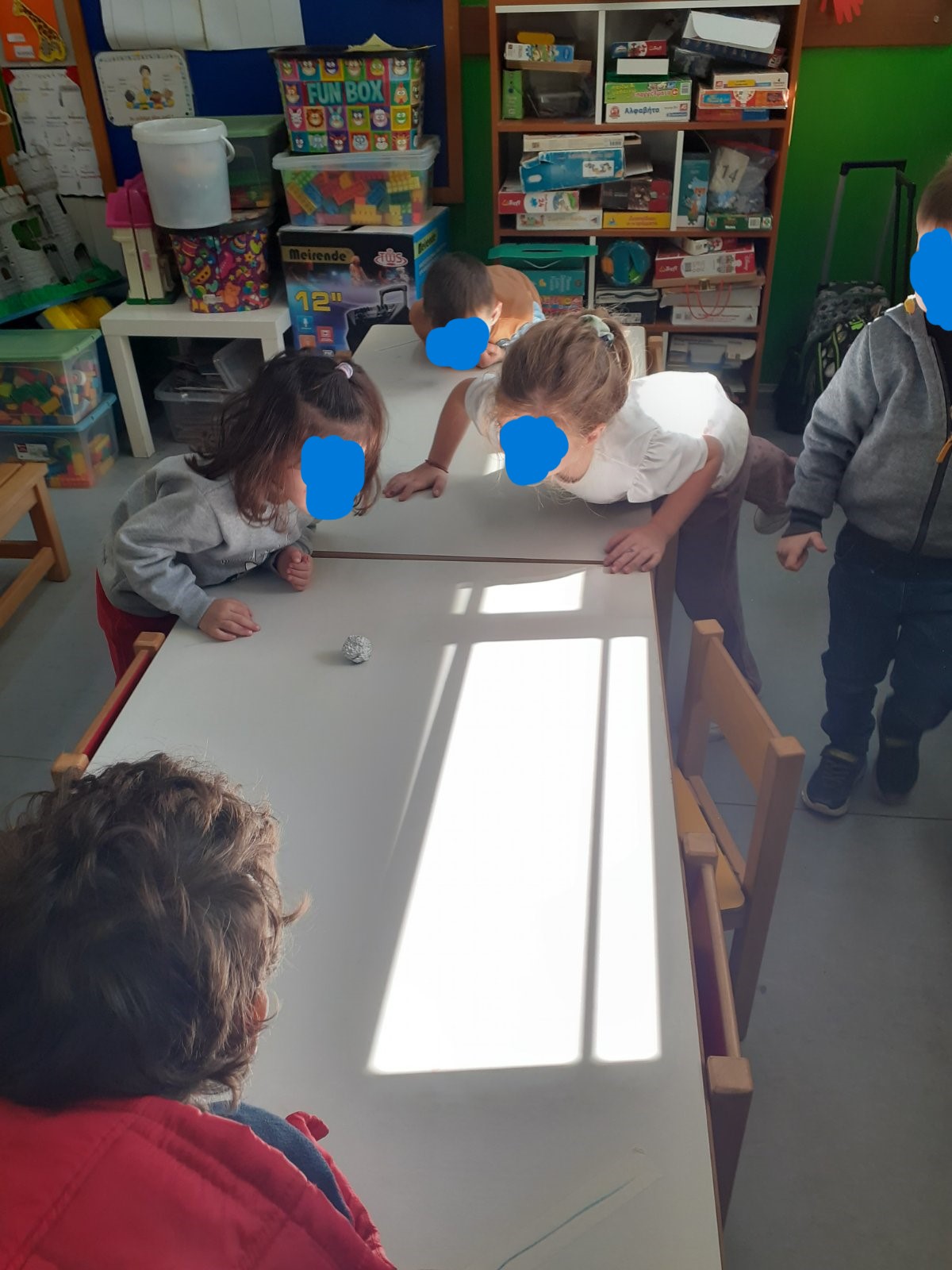 Ανά δύο παιδιά πρέπει φυσώντας να οδηγήσουν το μπαλάκι στο τέρμα,