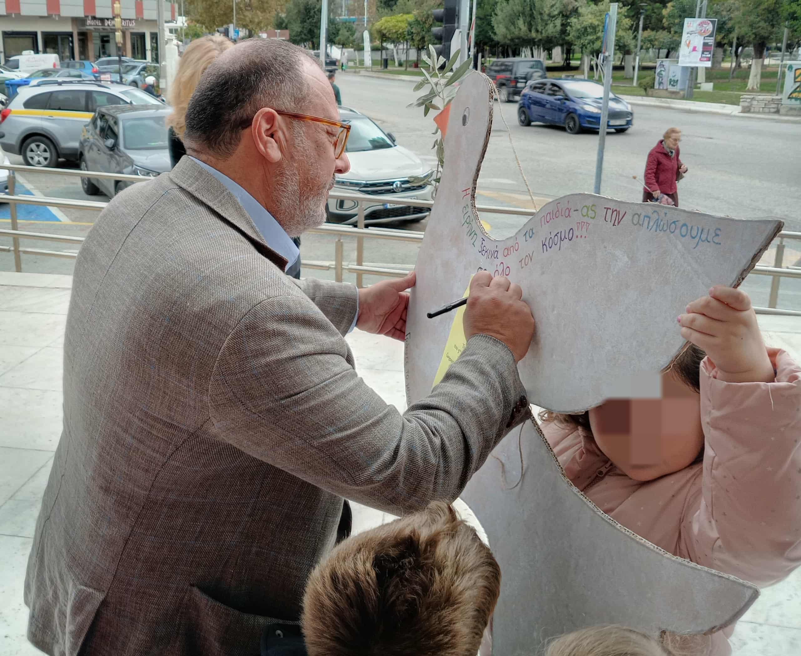 📍 Εικαστικές δημιουργίες των παιδιών ενώθηκαν σε ένα μεγάλο περιστέρι, το οποίο ταξίδεψε στο Δημαρχείο της Κομοτηνής 🏛️. Εκεί, μικροί και μεγάλοι είχαν την ευκαιρία να γράψουν τις δικές τους ευχές για Ειρήνη στον κόσμο 🌏.