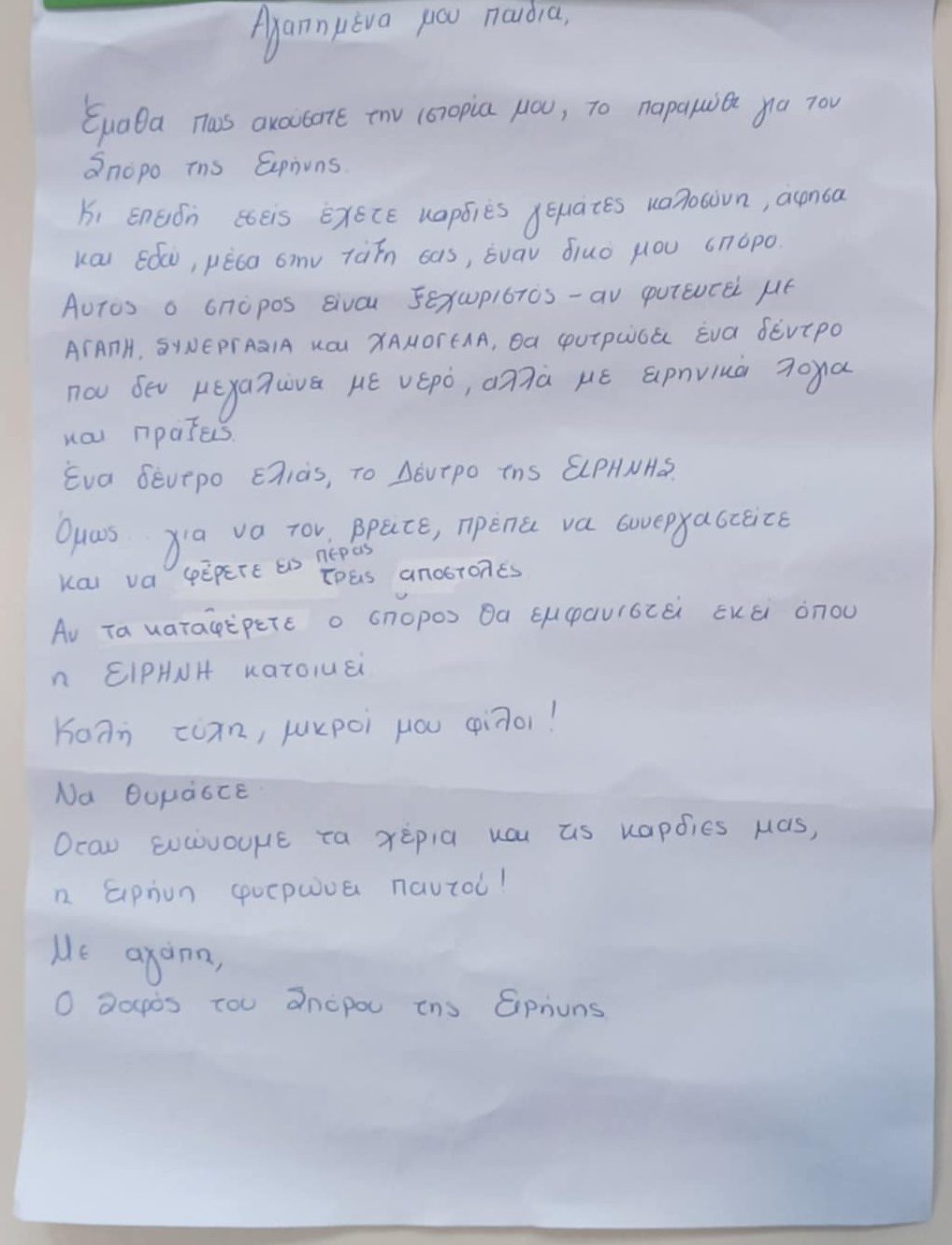 📜 Διαβάζοντας το γράμμα, καταλάβαμε πως το Περιστέρι της Ειρήνης μας ανέθετε μια αποστολή: