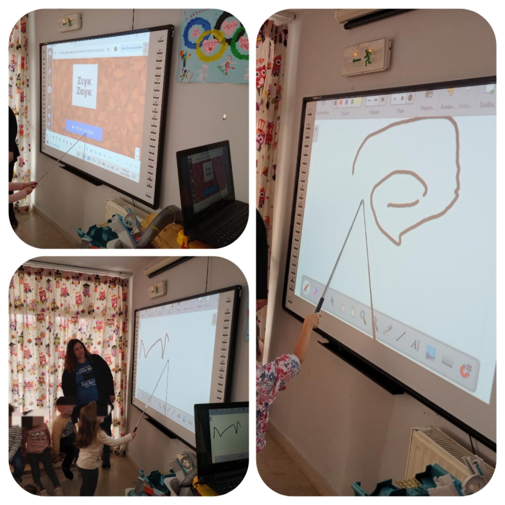 Χρησιμοποιώντας το ψηφιακό ζάρι στο διαδραστικό πίνακα, οι μαθητές σχεδιάζουν τη γραμμή που αναγράφεται σε αυτό.