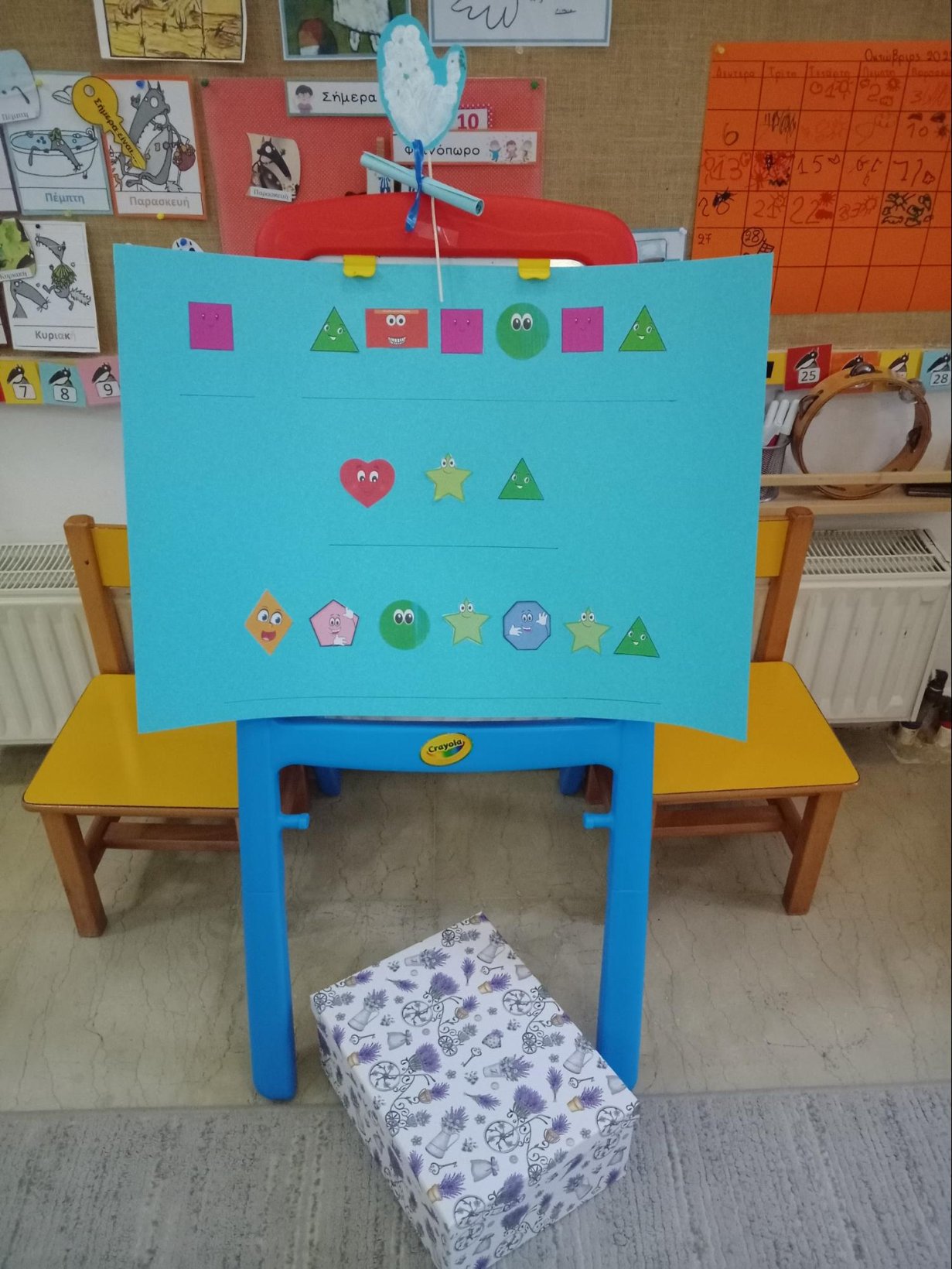 Την ημέρα της σχολικής μας γιορτής, μια έκπληξη μας περίμενε στην τάξη! 🎉Οι μαθητές παρατήρησαν στον πίνακα πολύχρωμα σχήματα 🔺🔵🟨 και ένα μυστηριώδες κουτί 📦.