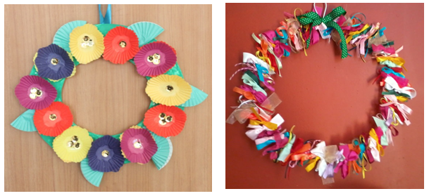 Εναλλακτικά μπορούμε αντί για γλωσσοπίεστρα να χρησιμοποιήσουμε θήκες για cupcake ή κορδέλες.Για το στεφάνι μπορεί να χρησιμοποιηθεί είτε σύρμα πίπας είτε ένα απλό σύρμα.