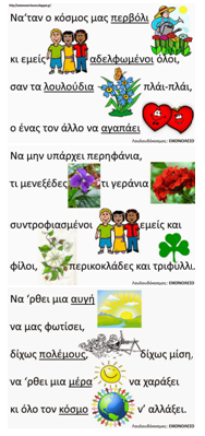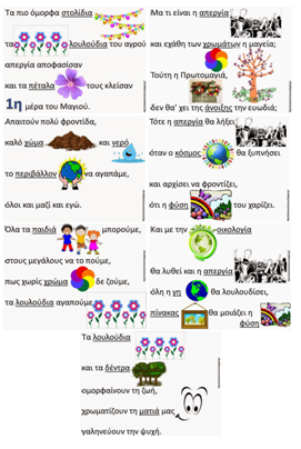 Ένα ακόμη εικονόλεξο για το υπέροχο τραγούδι «Λουλουδόκοσμος»το οποίο μπορείτε να ακούσετε από τη παιδική χορωδία του Σπύρου Λάμπρου.