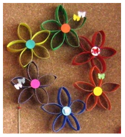 - Από εφημερίδες και λουλούδια με λωρίδες χαρτιού. Βήμα-βήμα οι οδηγίες για να το φτιάξετε βρίσκονται στον σύνδεσμο:https://edonipiagogeio.blogspot.com/2014/04/blog-post_29.html.
