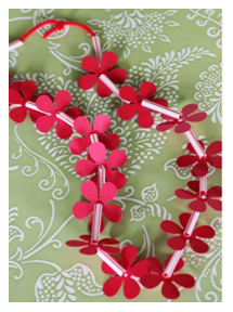 Μαγιάτικο κολιέ με καλαμάκια, κλωστή και χάρτινα λουλούδια.
