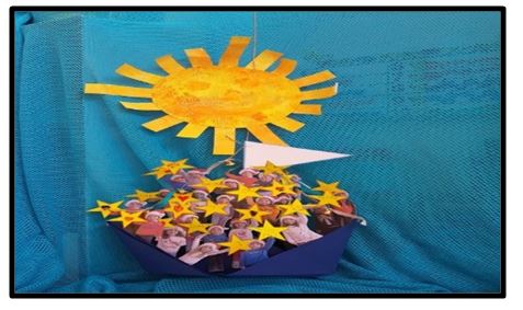 Κατασκευάσαμε ένα ομαδικό καράβι γεμάτο αγάπη και ευχές για όλα τα παιδιά του κόσμου.