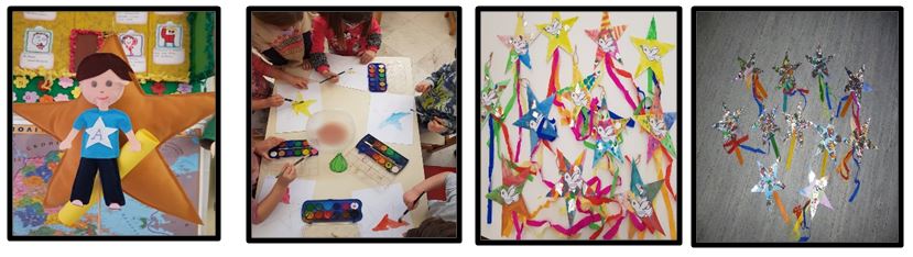 Την επόμενη μέρα μας περίμενε μία έκπληξη στην τάξη. Ο Αστερούλης μας έφερε το αγαπημένο του παραμύθι «Το δώρο της παπλωματούς» του JeffBrumbeau. Αφού το διαβάσαμε συζητήσαμε στην ολομέλεια για την αξία της προσφοράς και της αγάπης. Τα παιδιά αποτύπωσαν εικαστικά τη σκηνή που τους άρεσε πιο πολύ από το παραμύθι. Έπειτα αποφασίσαμε να μοιράσουμε και εμείς την αγάπη μας σε παιδιά που νοσούν από διάφορες ασθένειες, αγοράζοντας αστεράκια του MakeaWish.