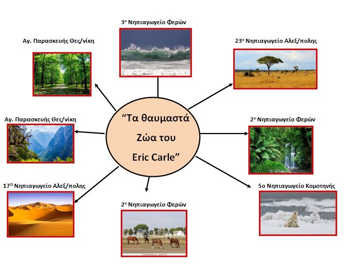 Με αφορμή το βιβλίο του Eric Carle με την υπέροχη εικονογράφηση, αποφασίσαμε να συγγράψουμε το πρώτο συνεργατικό μας βιβλίο. Κάθε συνεργαζόμενο σχολείο θα αναλάβει να βρει πληροφορίες για μια κατηγορία ζώων και φυσικά θα κάνει και τη σχετική εικονογράφηση, σύμφωνα με τις πρωτότυπες τεχνικές ζωγραφικής του αγαπημένου μας συγγραφέα! Οι μαθητές του Νηπιαγωγείου μας ανέλαβαν τα ζώα των πάγων!
