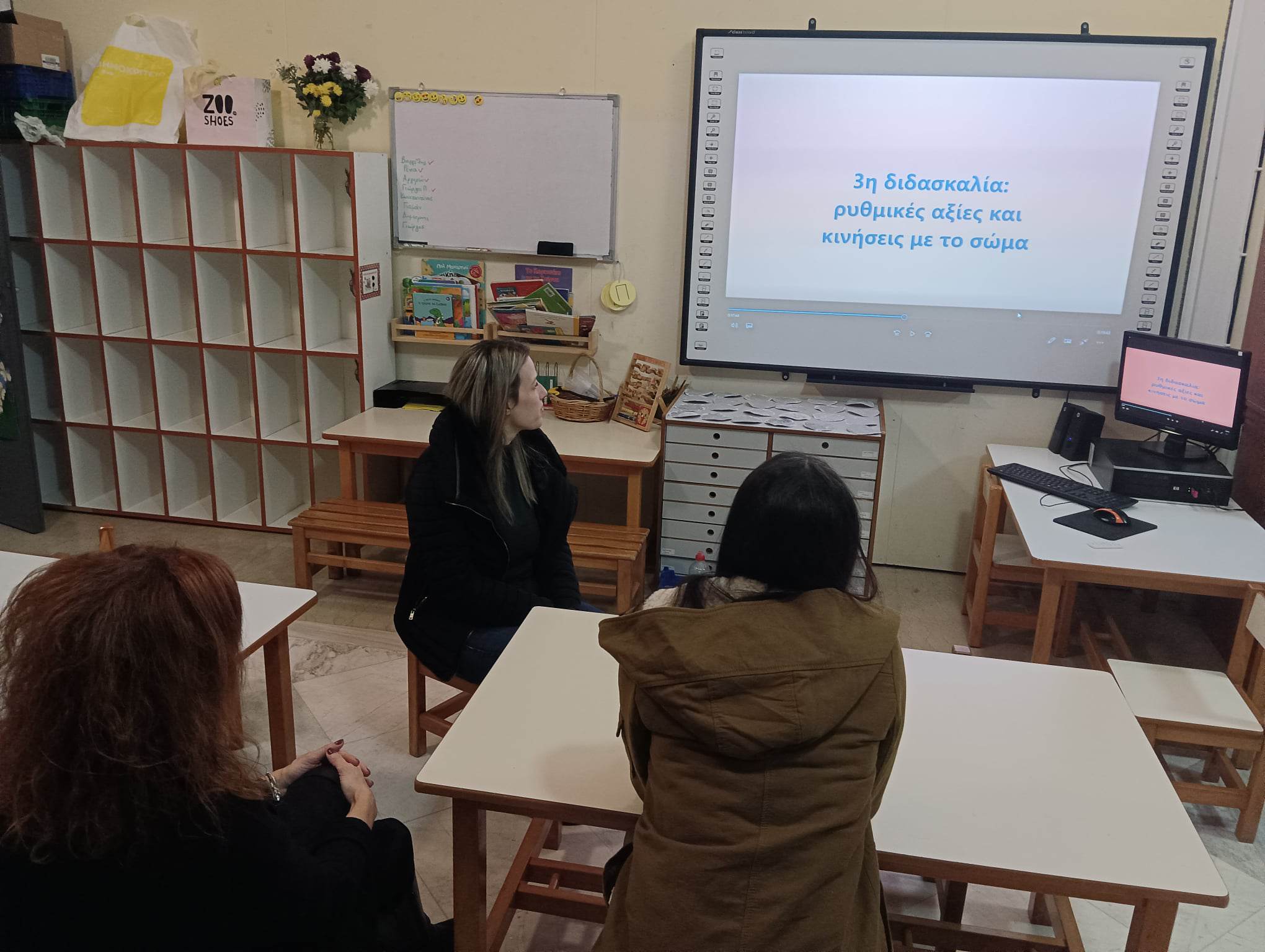 Την Πέμπτη 25/11/2022 πραγματοποιήθηκε στο Νηπιαγωγείο μας ενδοσχολική επιμόρφωση με επιμορφώτρια την Προϊσταμένη Μαλαματή Πονηρίδου και τίτλο: «Μουσικοκινητική Αγωγή: η διδασκαλία των ρυθμικών αξιών στην προσχολική ηλικία».