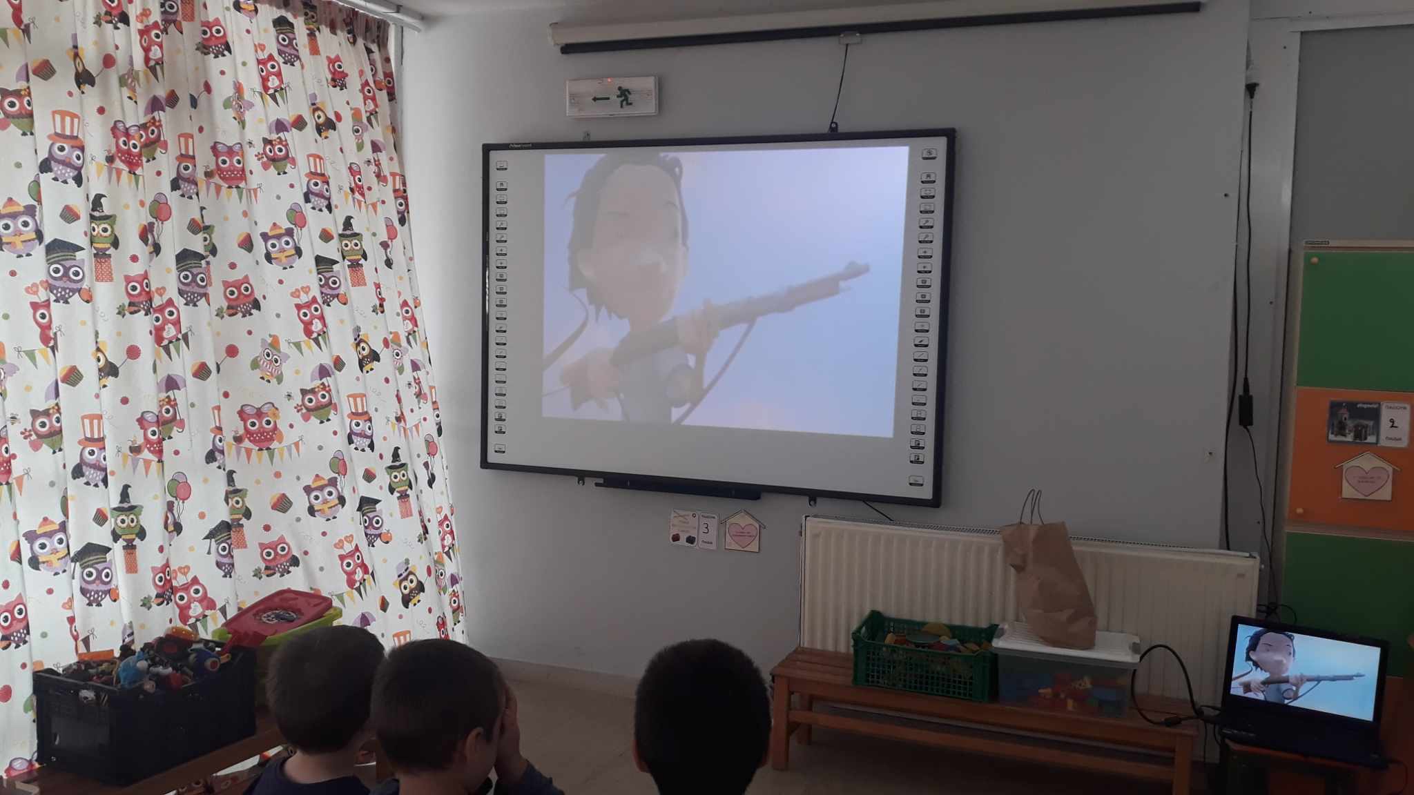 Με αφόρμηση την ταινία animation ” Ο πόλεμος δεν είναι παιχνίδι ” τα παιδιά αποτύπωσαν εικαστικά τις σκέψεις τους για τον Πόλεμο και την Ειρήνη.