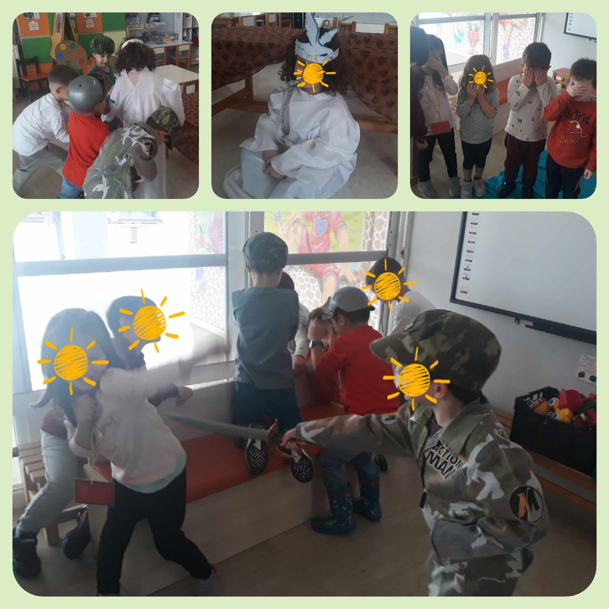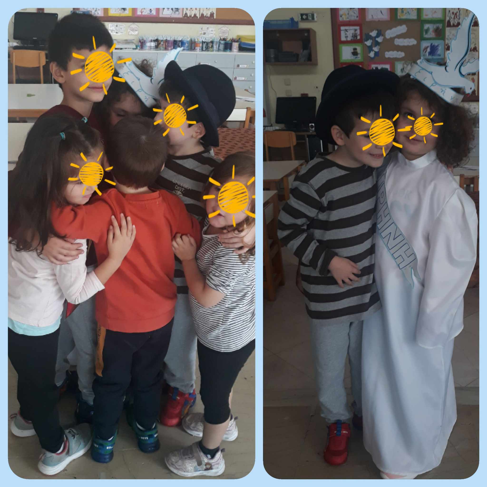 Παίξαμε ψυχοκινητικά παιχνίδια «Μην ξυπνήσεις τον Εγκέλαδο με το ντέφι» και «Αγαλματάκια αγαλματάκια ο εγκέλαδος σας περιμένει»