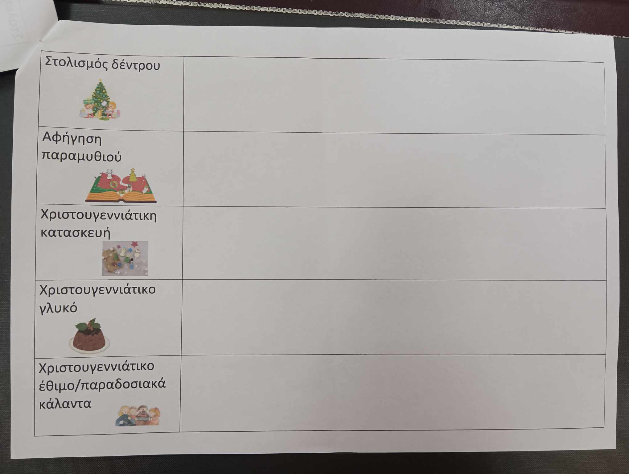 Διαβάσαμε το παραμύθι «το φύλλο που δεν ήθελε να πέσει». Στη συνέχεια το φύλλο της ιστορίας, το οποίο ήταν κρυμμένο μέσα στο βιβλίο, μας ζήτησε να φτιάξουμε μια δική μας ιστορία με ήρωα ένα φύλλο. Για να μας διευκολύνει μας είχε φέρει κάρτες με διάφορες εικόνες. Αφού παρατηρήσαμε τις εικόνες τις κρεμάσαμε από την ανάποδη τους πλευρά σε ένα σχοινί και η ιστορία μας ξεκίνησε. Καθώς ξετυλίγαμε την ιστορία μας ένα παιδί τραβούσε μια κάρτα στην τύχη παρατηρούσαμε την εικόνα και με βάση αυτήν δημιουργούσαμε την ιστορία μας. Τίτλος της ιστορίας μας « Το μεγάλο πράσινο φύλλο». Η ιστορία εκτυπώθηκε έγινε βιβλιαράκι για κάθε παιδί κ στην συνέχεια το εικονογραφήσαμε.