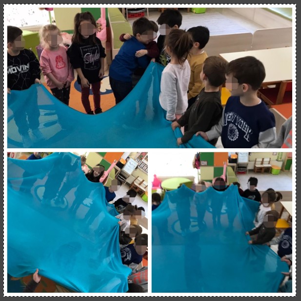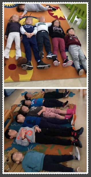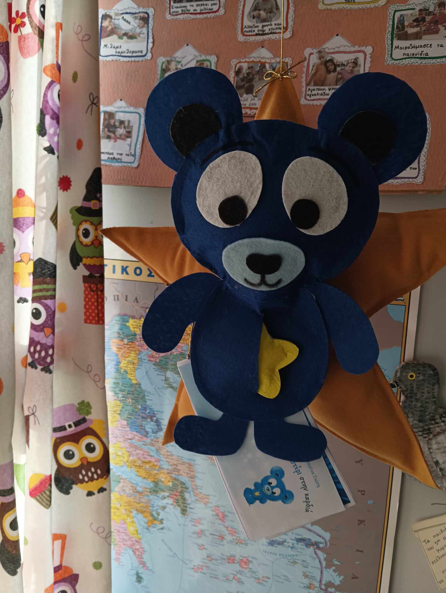 Τι είναι η αγάπη και τι γνωρίζουμε γι’ αυτήν! Δημιουργήσαμε έναν εννοιολογικό χάρτη με θέμα «αγάπη είναι…» όπου καταγράψαμε τις ιδέες των παιδιών. Στη συνέχεια ξαπλώσαμε κάτω στο πάτωμα με κλειστά τα μάτια. Με το άκουσμα απαλής μουσικής παίρναμε βαθιές αναπνοές. Σε κάθε εισπνοή φανταζόμασταν τον εαυτό μας να γεμίζει με αγάπη και στην εκπνοή να φεύγει αγάπη από μέσα μας και να γεμίζει η τάξη. Έπειτα παίξαμε τον ωκεανό της αγάπης». Όλοι μαζί κρατούσαμε ένα μπλε πανί που ήταν ο ωκεανός. Κάθε φορά περνούσε ένα παιδί από κάτω και όταν έβγαινε επέλεγε έναν φίλο του για να του χαρίσει μια αγκαλιά και να μοιραστεί μαζί του αγάπη του. Έπειτα ήρθε στην παρέα μας το μπλε αρκουδάκι παρέα με το αστέρι του. Μας συστήθηκε και μας διάβασε την ιστορία του «Με ένα αστέρι στην καρδιά». Μας ρώτησε εάν θέλουμε να γίνουμε κ εμείς υπερήρωες και να μοιράσουμε χαμόγελα σε παιδιά που νοσούν από σοβαρές ασθένειες κ το έχουν ανάγκη!