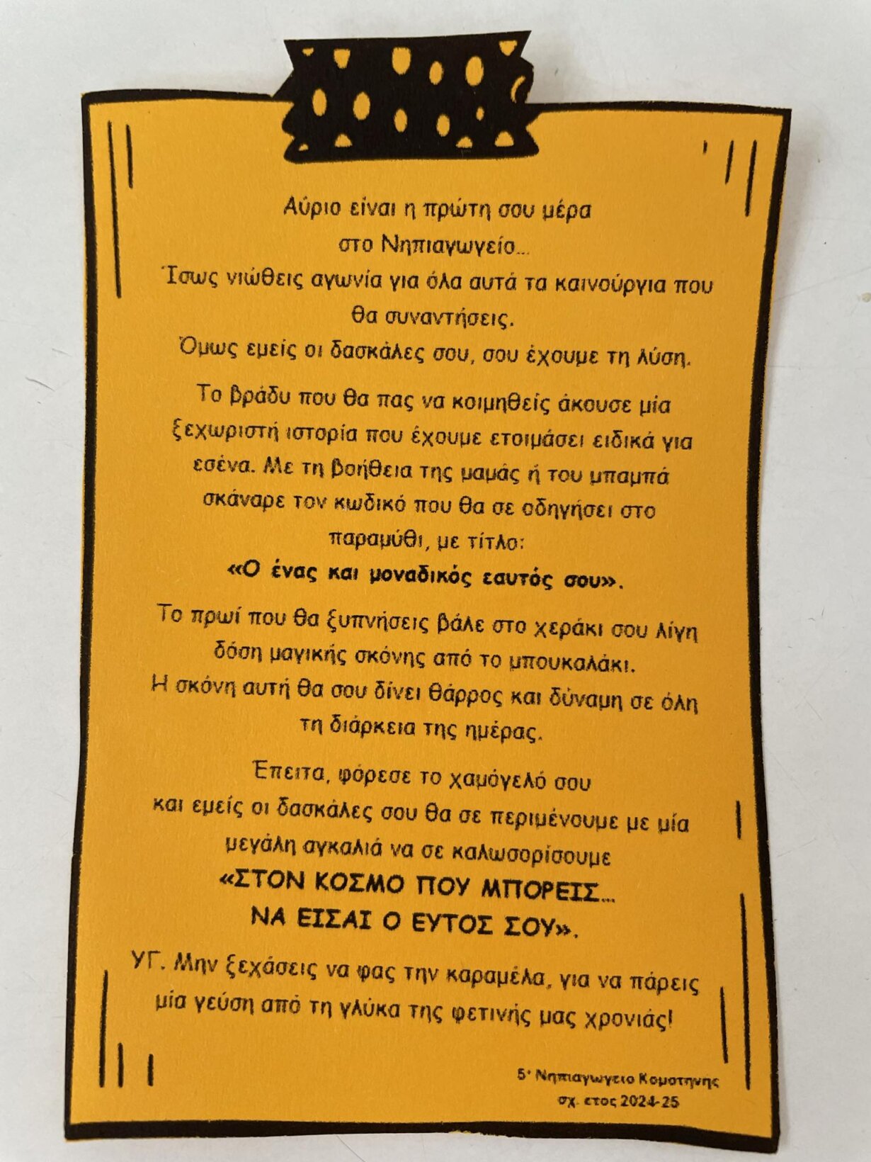 Καλωσόρισες στον κόσμο όπου μπορείς να είσαι ο εαυτός σου! Δημοσιεύθηκε στις 9 Σεπτεμβρίου 2024 από τον/την 5ο ΝΗΠΙΑΓΩΓΕΙΟ ΚΟΜΟΤΗΝΗΣ Δωράκια καλωσορίσματος των μικρών μας μαθητών για τη σχολική χρονιά 2024-2025!