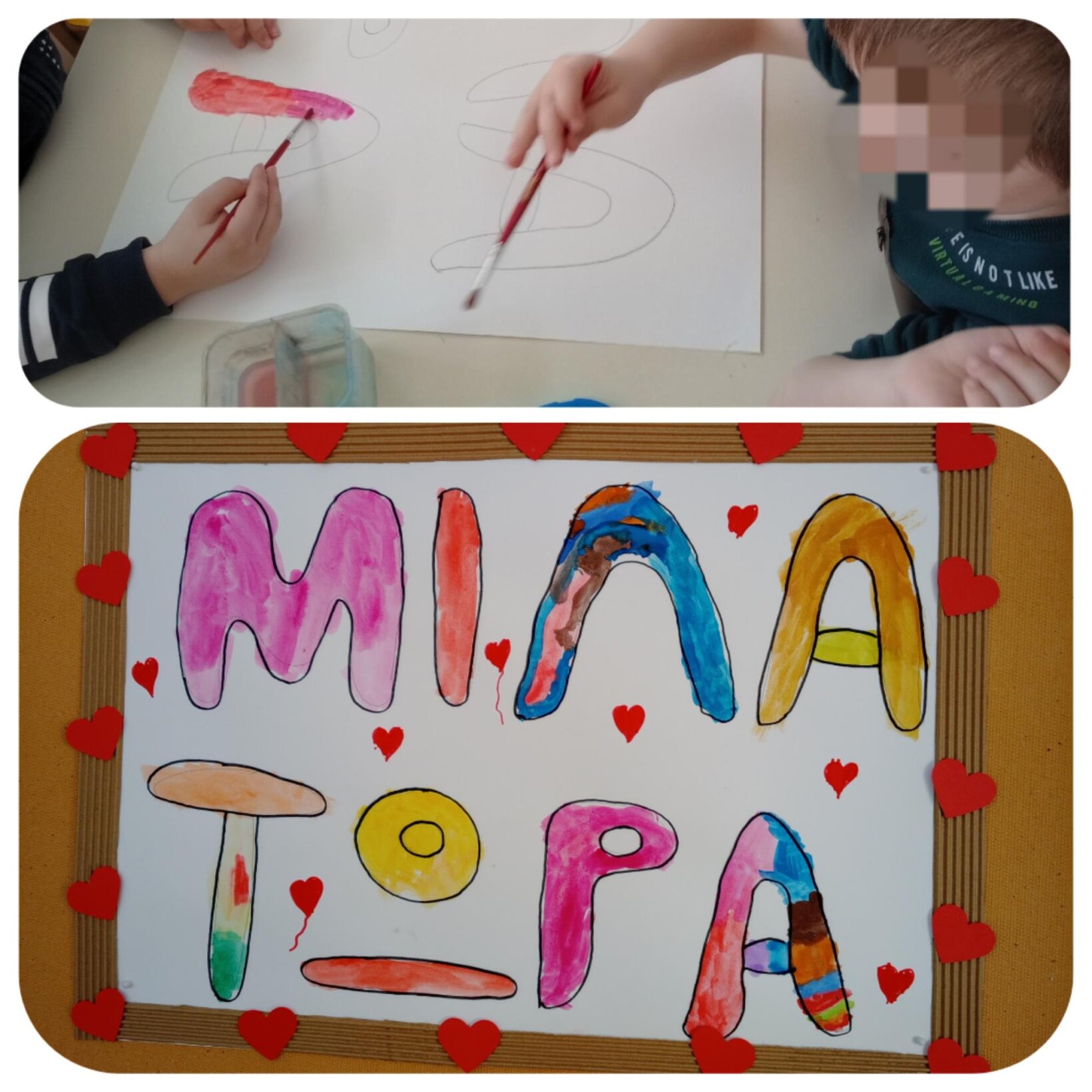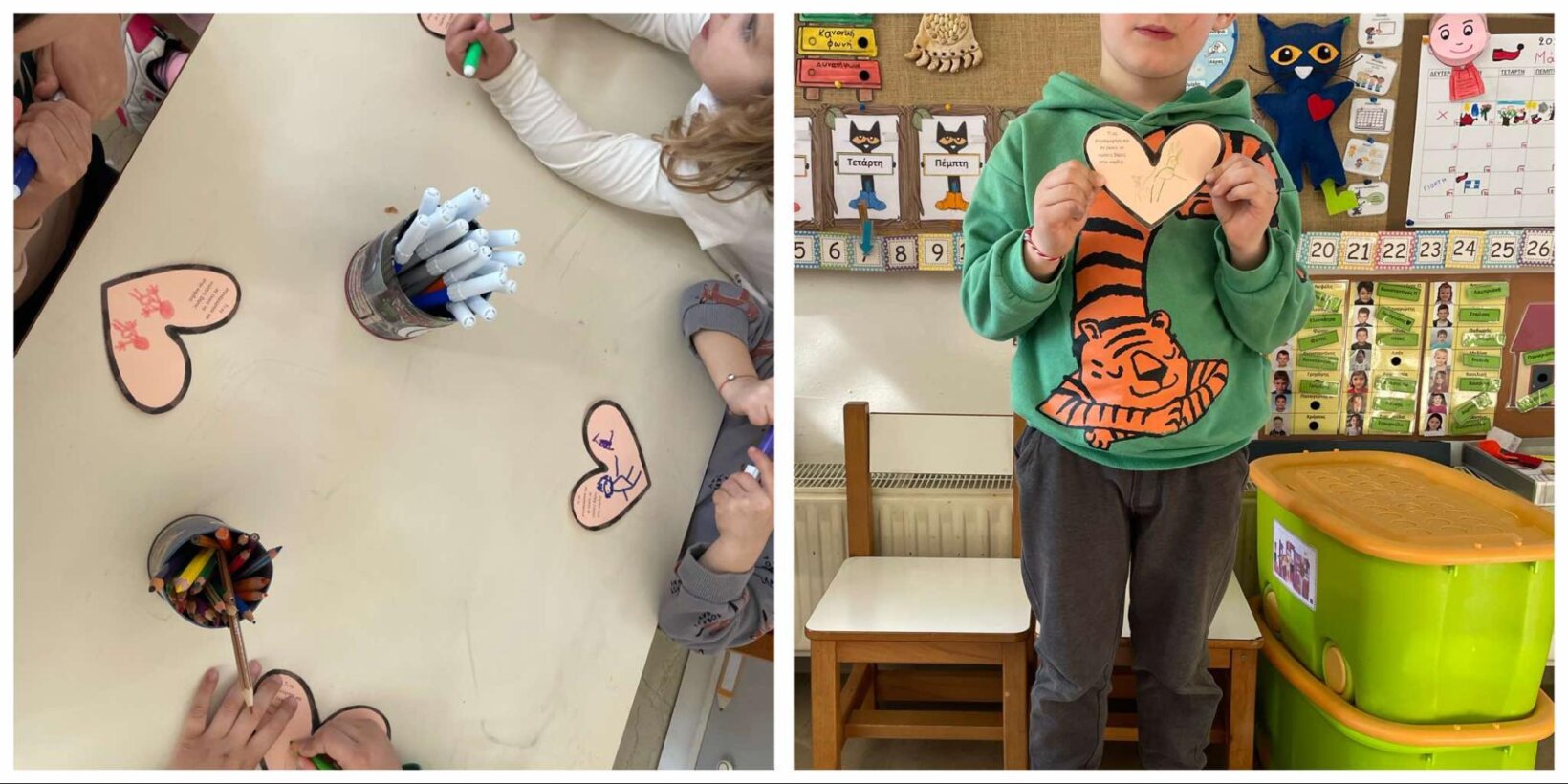 Τέλος, ζωγραφίζουμε καρδιές στα χέρια μας και….το κολλάμε με αγάπη!