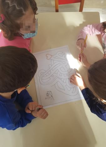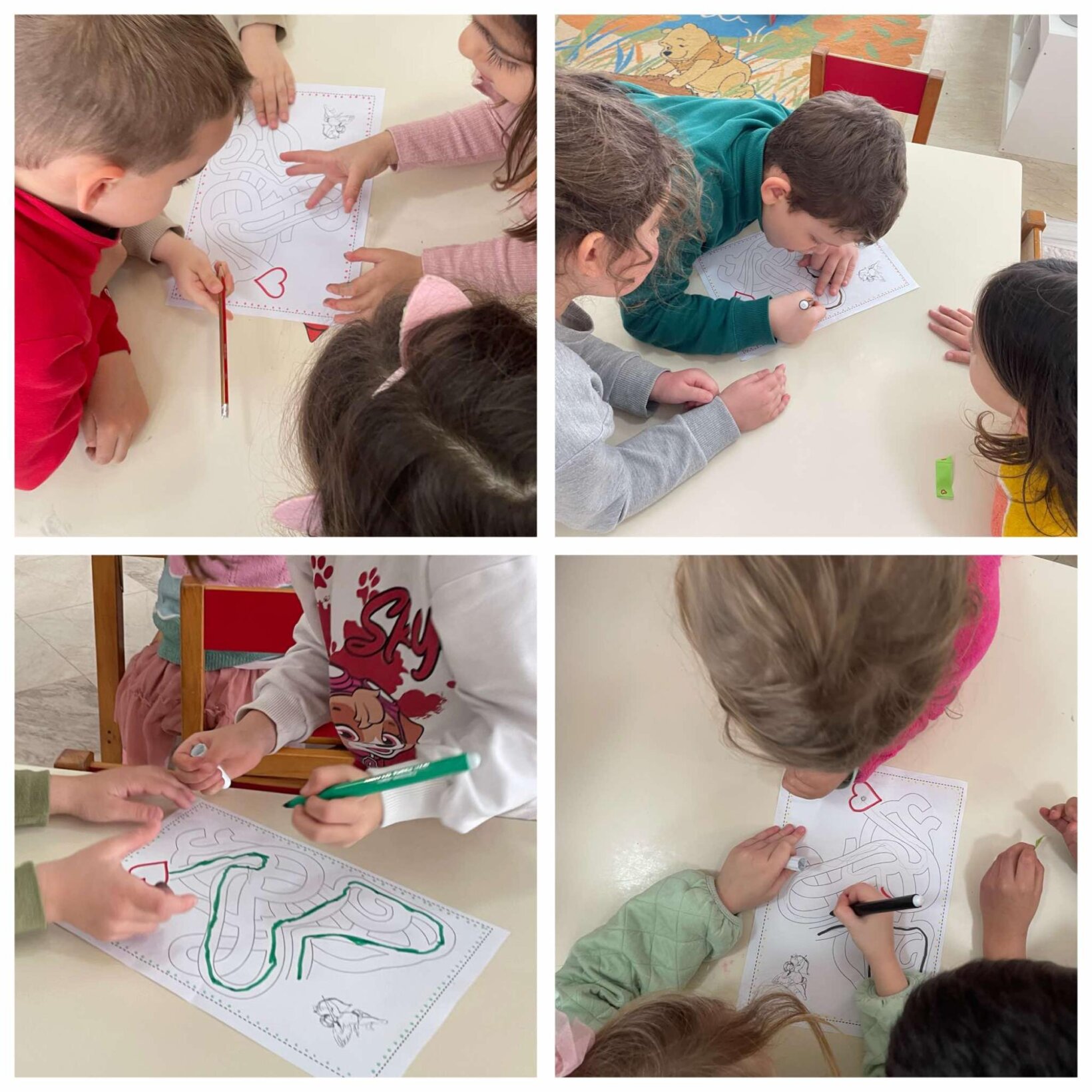 Συνεργαστήκαμε σε ομάδες για να λύσουμε τον λαβύρινθο και να βοηθήσουμε το αγγελάκι της αγάπης να φτάσει στην καρδιά!