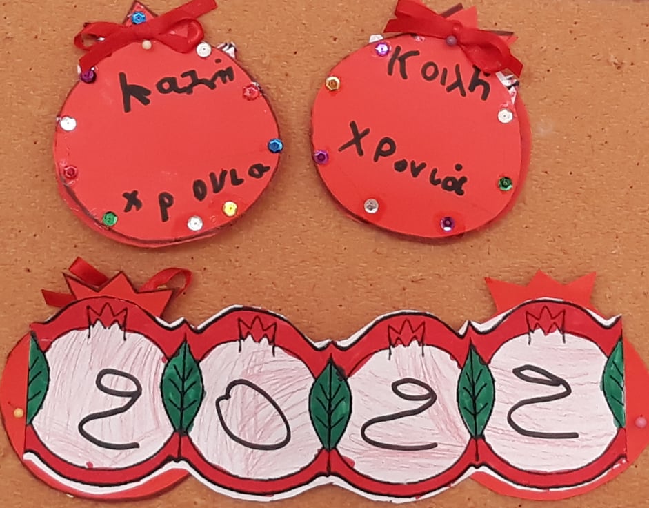 Σπάσαμε το ρόδι της τάξης για καλή χρονιά και αποφασίζουμε τη νέα χρονιά να χαρίσουμε άφθονα χαμόγελα.