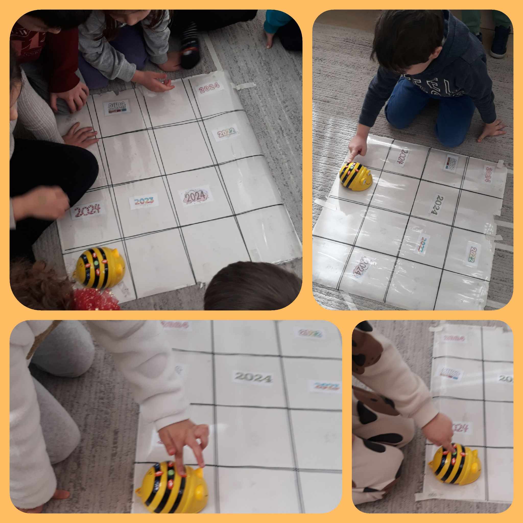 Βρήκαμε με τη βοήθεια της beebot τους αριθμούς της νέας χρονιάς και συνεργαστήκαμε, ώστε να τους τοποθετήσουμε στη σωστή σειρά.