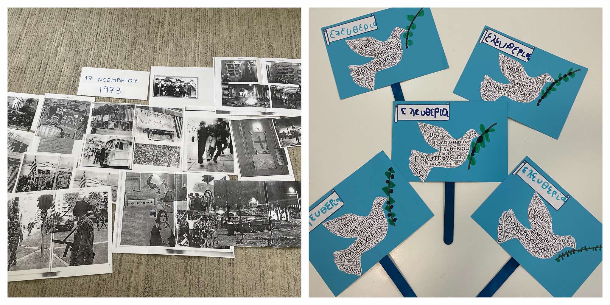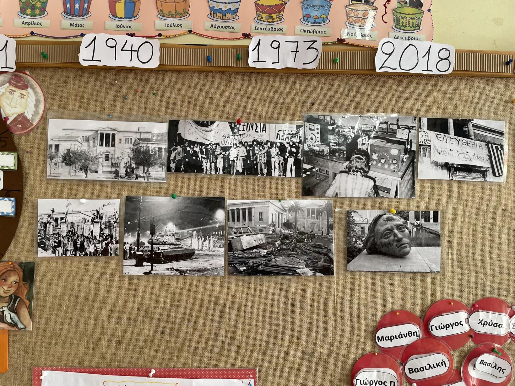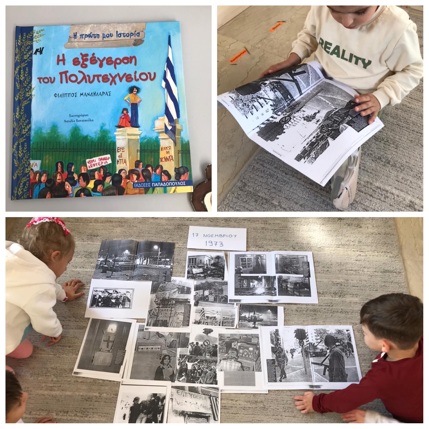 Διαβάσαμε το βιβλίο « η εξέγερση του Πολυτεχνείου» και με τη βοήθεια φωτογραφικού υλικού μιλήσαμε για τα γεγονότα τις 17 Νοέμβρη του 1973.