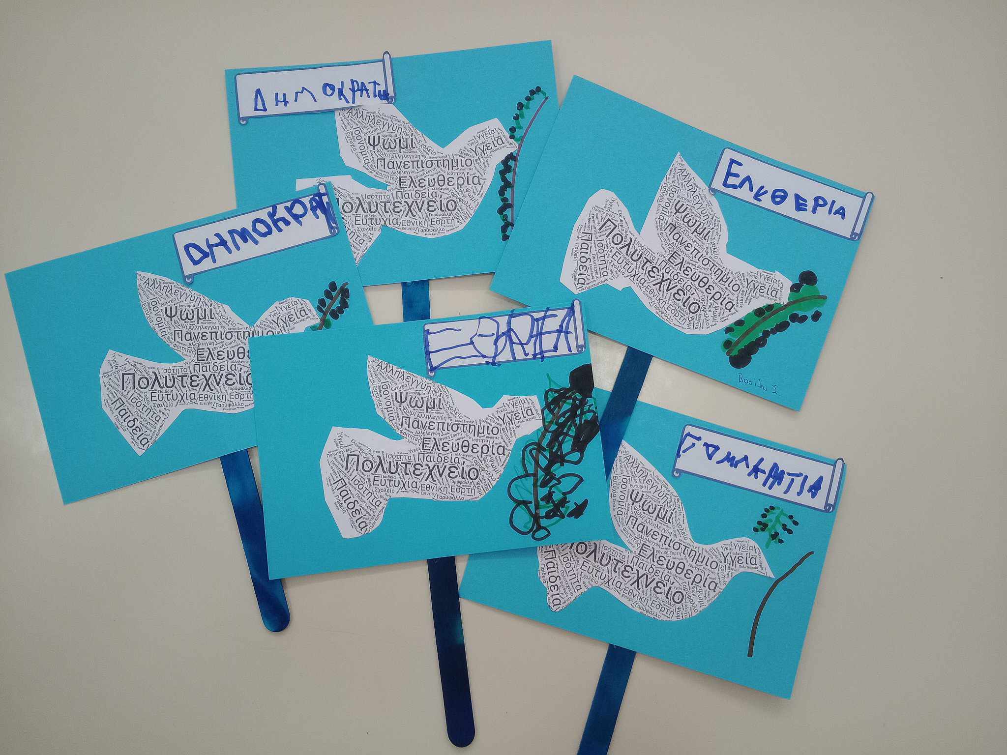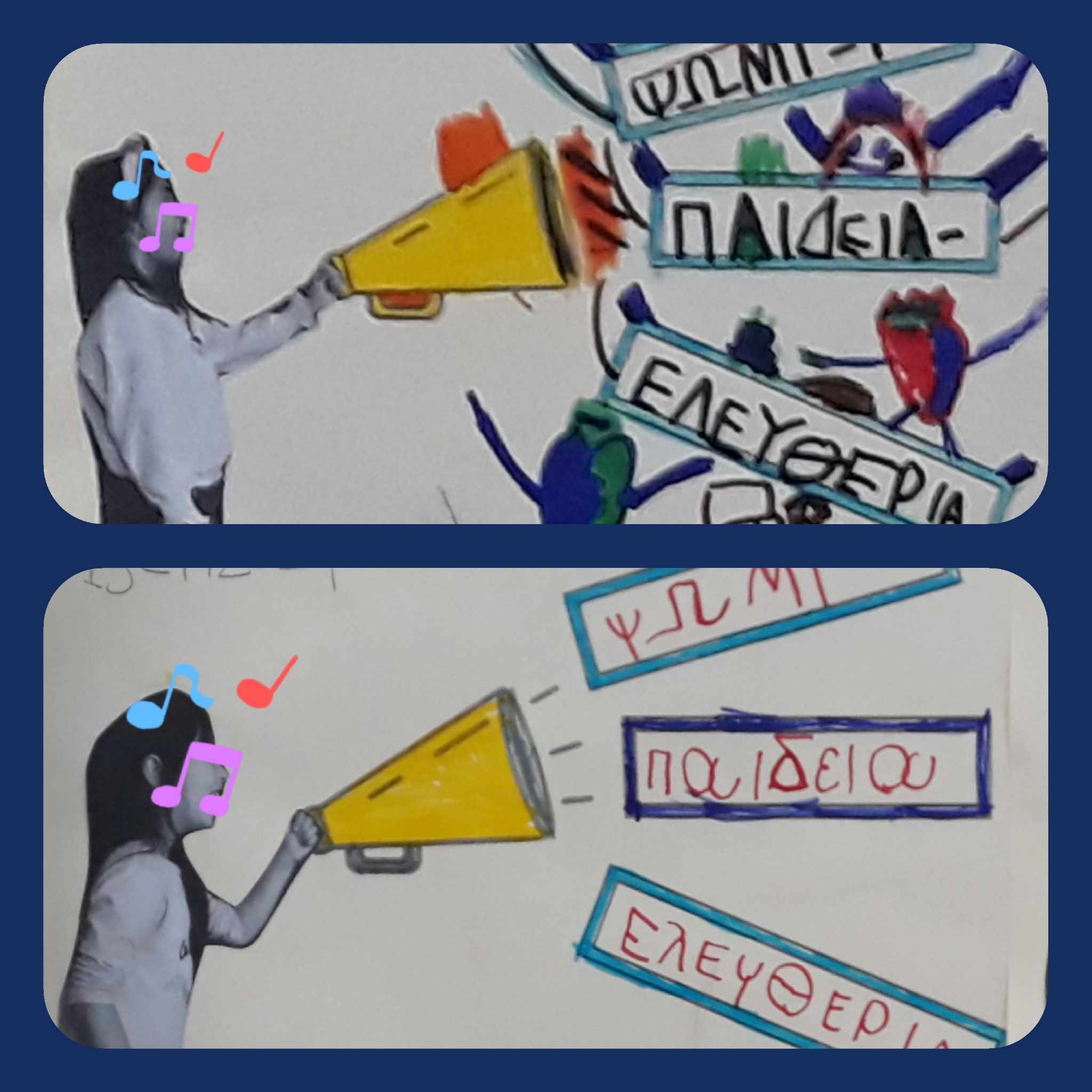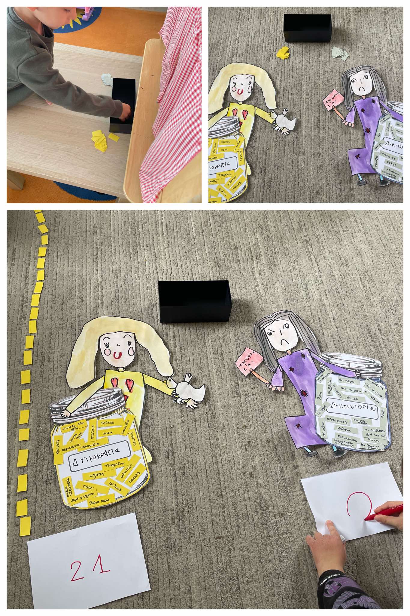 Τα παιδιά ζωγράφισαν τη Δημοκρατία μέσα από τα δικά τους μάτια και γεμίσαμε το βάζο της με λέξεις που της ταιριάζουν.