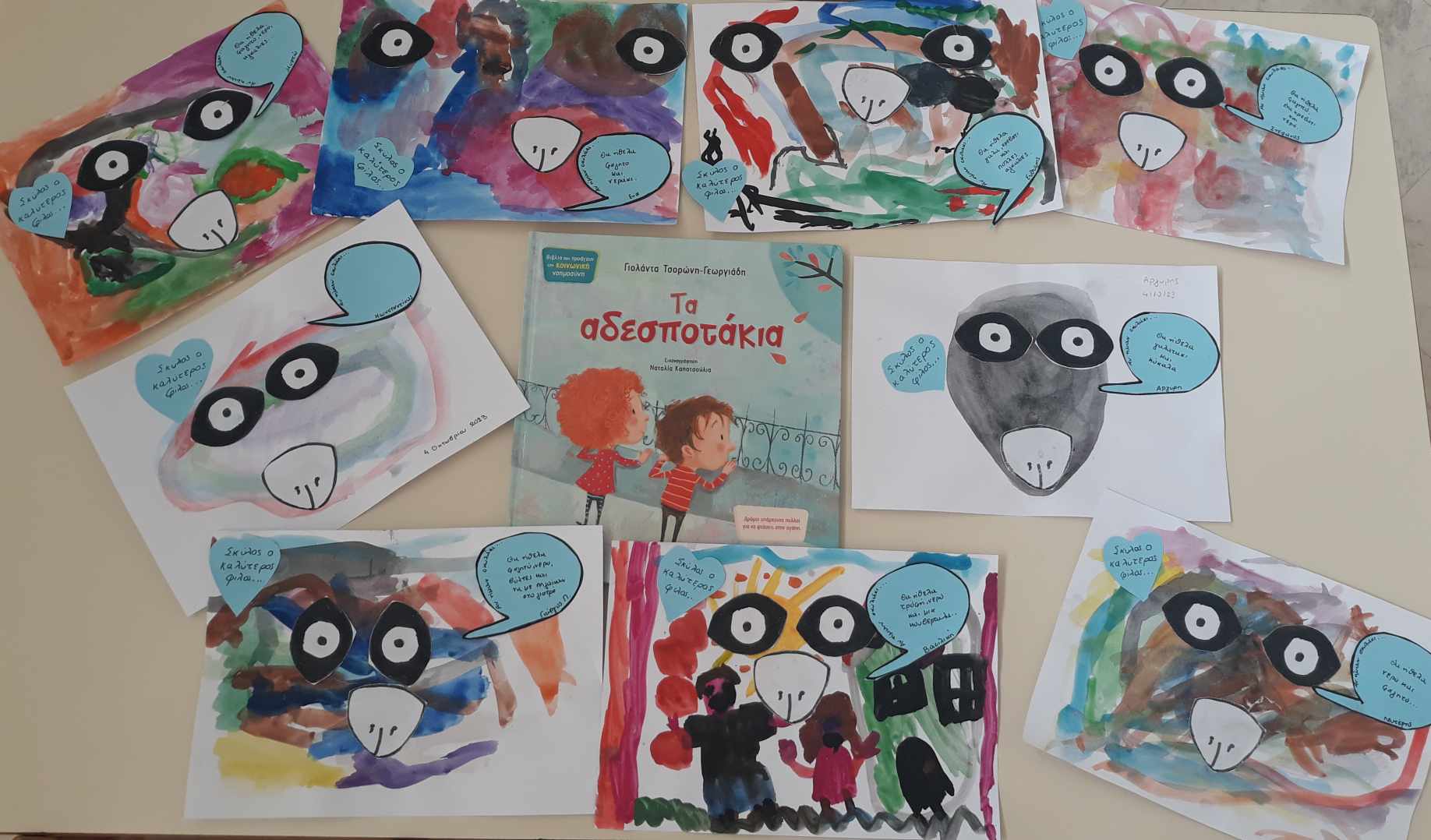 Με αφορμή το βιβλίο της Γιολάντας Τσορώνη-Γεωργιάδη, με τίτλο “Τα αδεσποτάκια”, τα παιδιά αποτύπωσαν εικαστικά τα συναισθήματα ενός αδέσποτου ζώου.