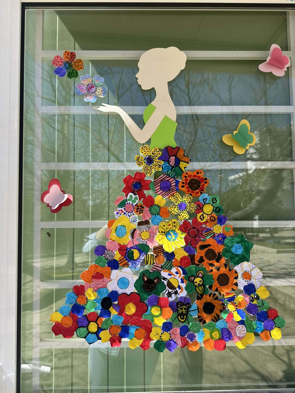Κι έτσι για να μοσχομυρίσει ο τόπος, για να καλωσορίσουμε την άνοιξη τα παιδιά χρωματισαν με τον δικό του μοναδικό τρόπο το καθένα, έκοψαν τα λουλουδάκια κι έφτιαξαν το φόρεμα της Λουλουδένιας μας που στολίζει πανέμορφα την πόρτα της τάξης μας! Η δική μας άνοιξη έχει χρώματα, έχει μυρωδιές, έχει νοσταλγία κι ελευθερία!