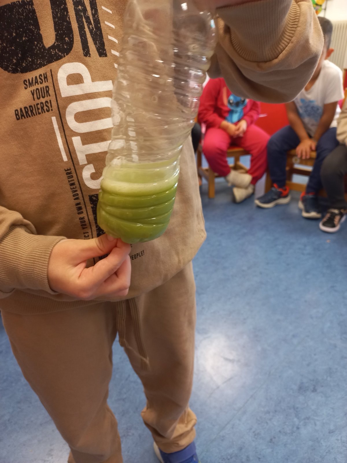 Έπειτα έπαιξε μαζί μας ζητώντας να του φέρουμε αντικείμενα με συγκεκριμένο χρώμα, μας έμαθε τραγούδια, μας έφτιαξε τα μαγικά του χρώματα αναμειγνυοντας τα σε μπουκάλια και φυσικά μας έβαλε να ζωγραφίσουμε όλοι μαζί μια ομαδική ζωγραφιά…Επιπλέον για να δει τι καταλάβαμε, μας αξιολόγησε με διαφορά φύλλα εργασίας και εμείς με τη σειρά μας τα πήγαμε τελεια!!!