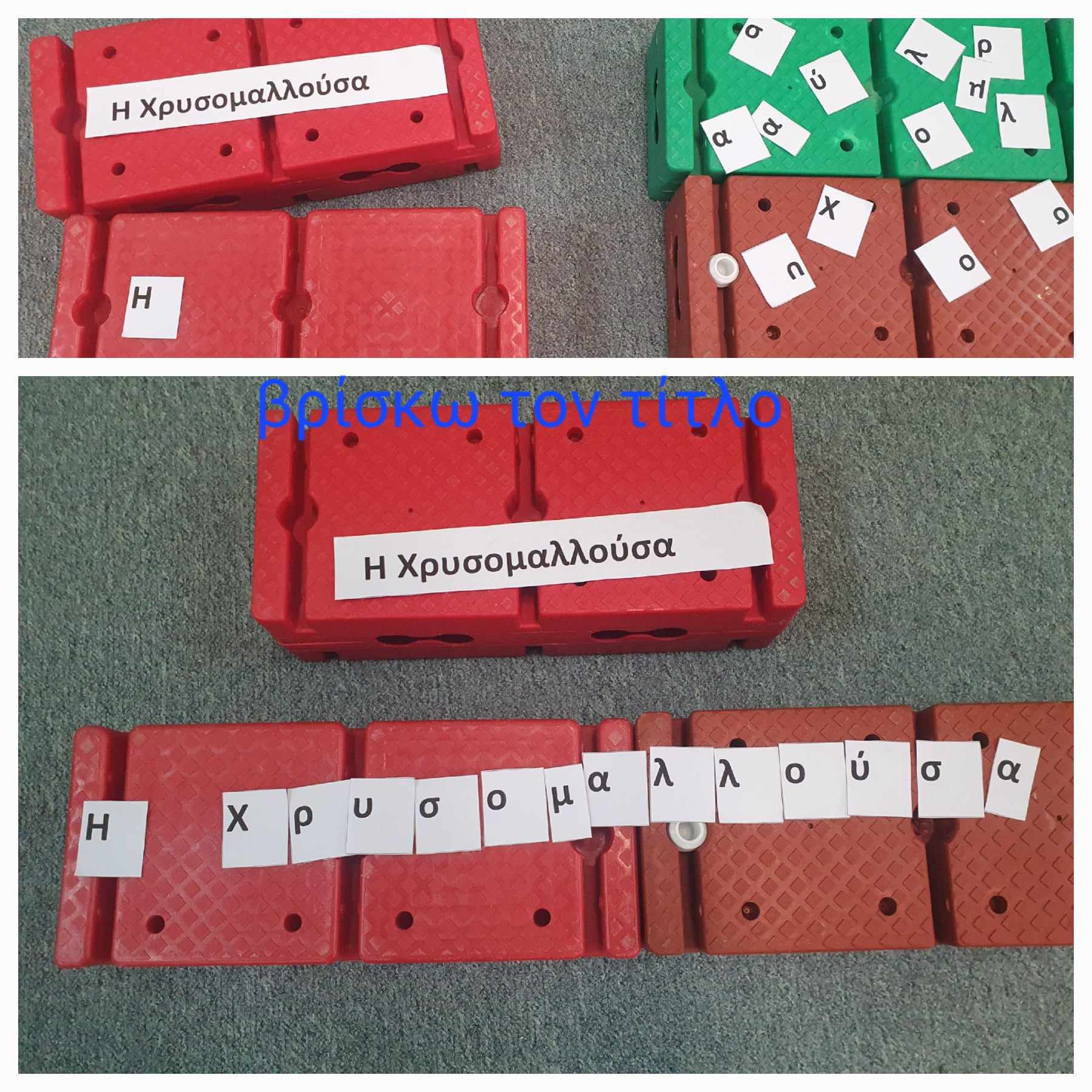 Βάλαμε τις εικόνες του παραμυθιού στη σωστή σειρά.Παίξαμε παιχνίδια λέξεων :αν αντι για χρυσά μαλλιά είχε κόκκινα μαλλιά πώς θα την έλεγαν;