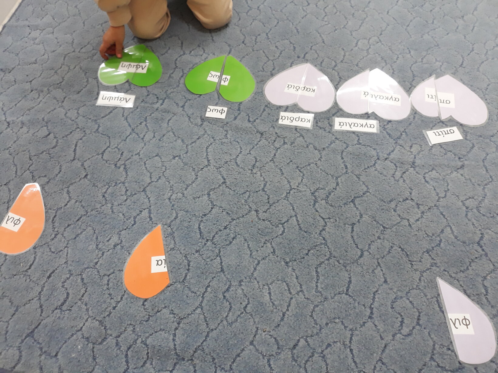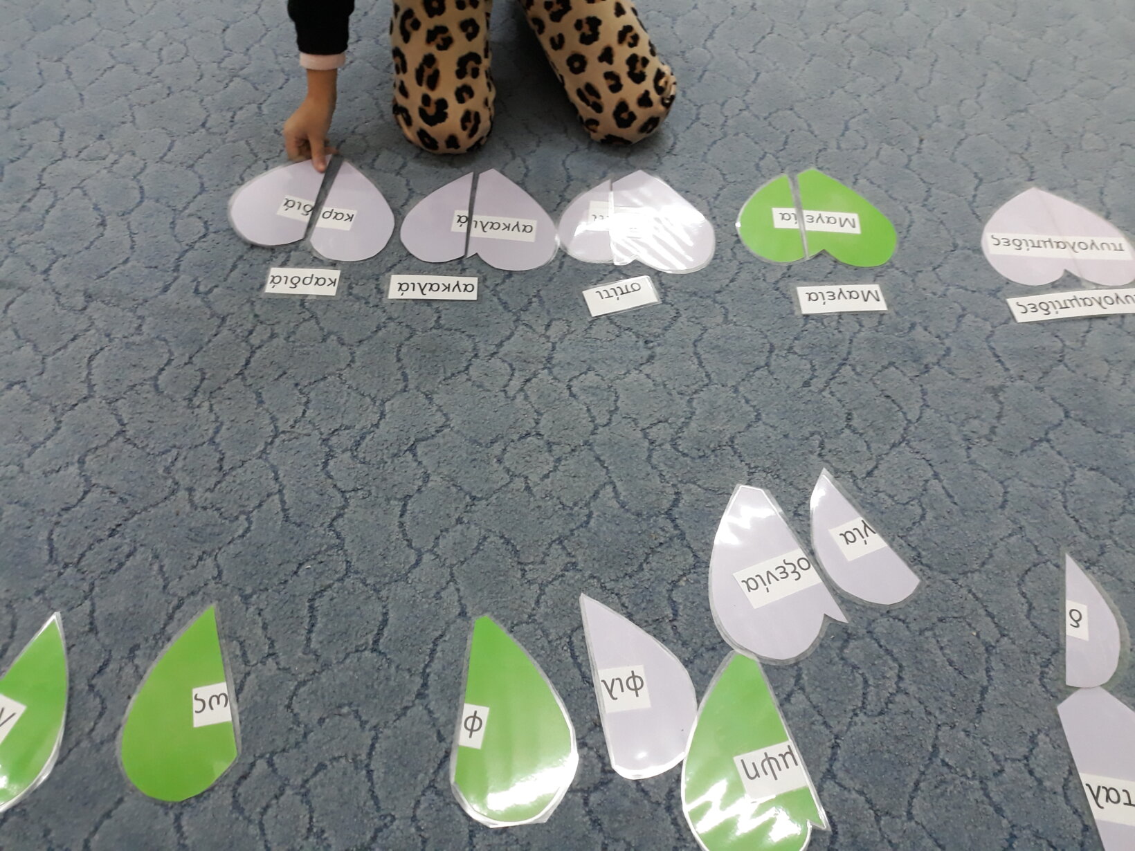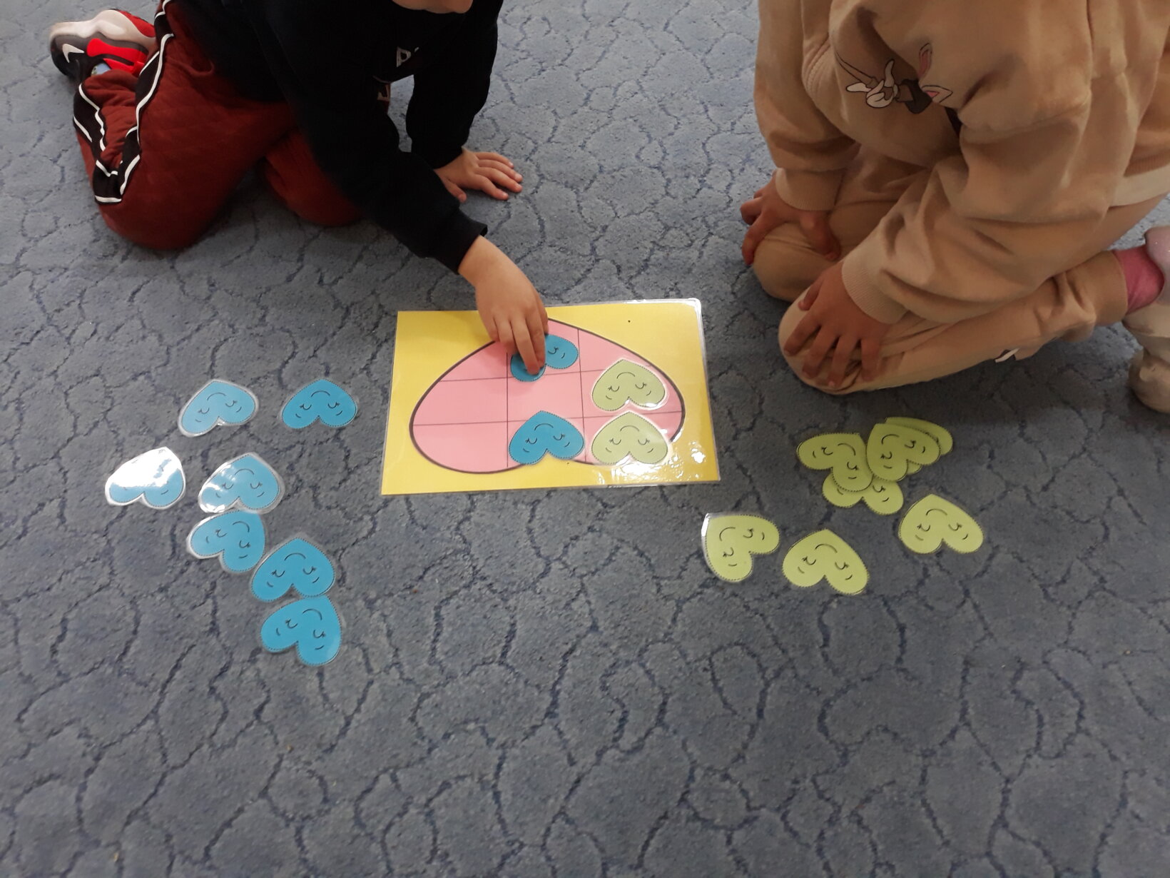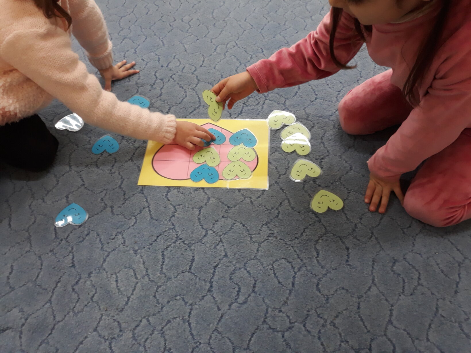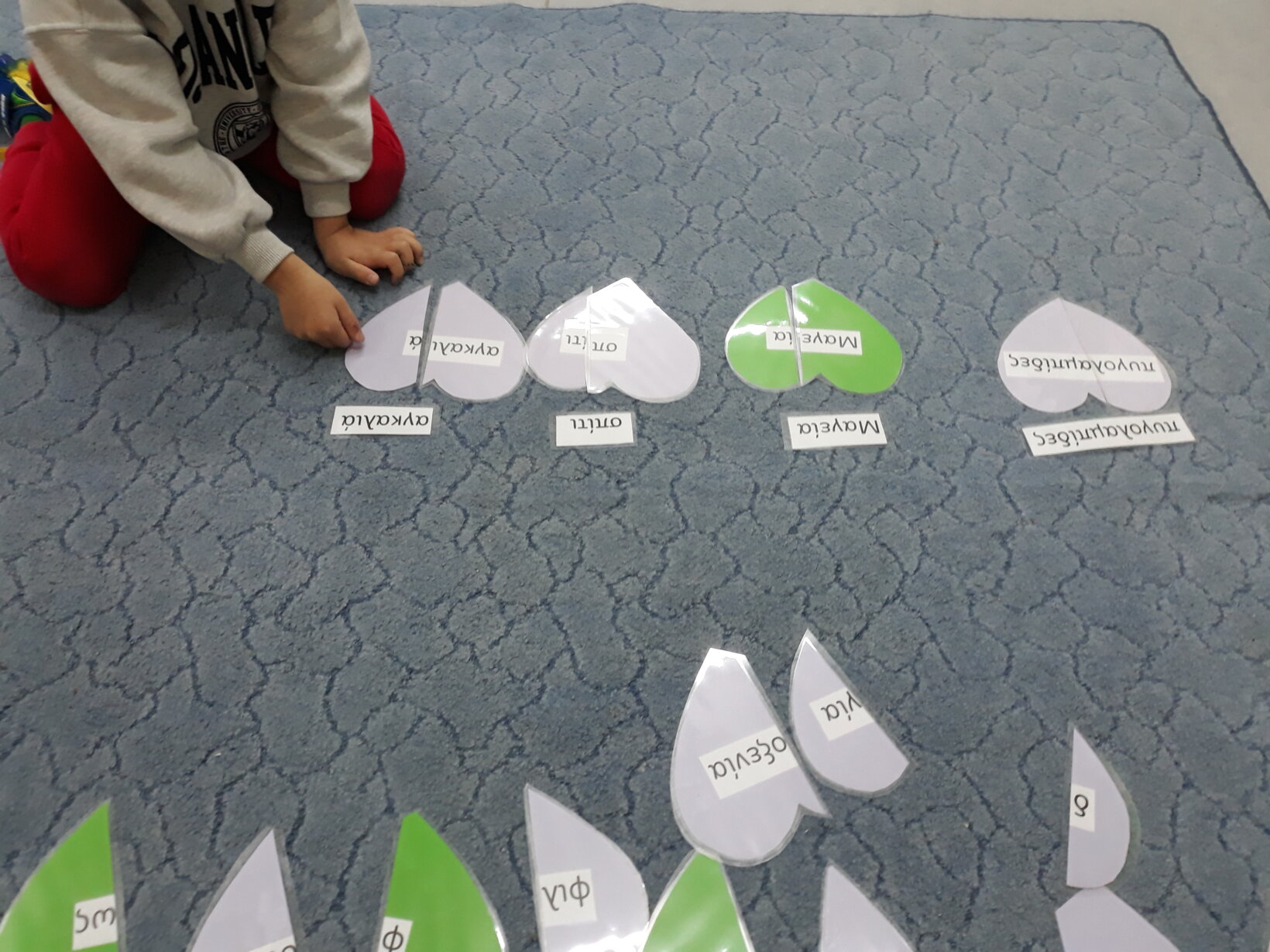 Επιλέξαμε λέξεις μέσα από το βιβλίο και τις συνθέσαμε ενώνοντας τα σωστά κομμάτια από κάθε καρδιά κάθε φορά…