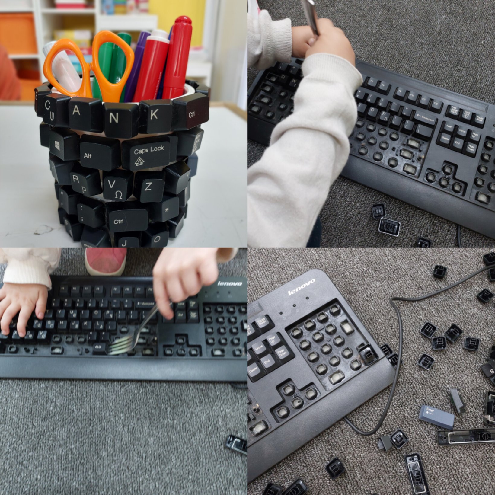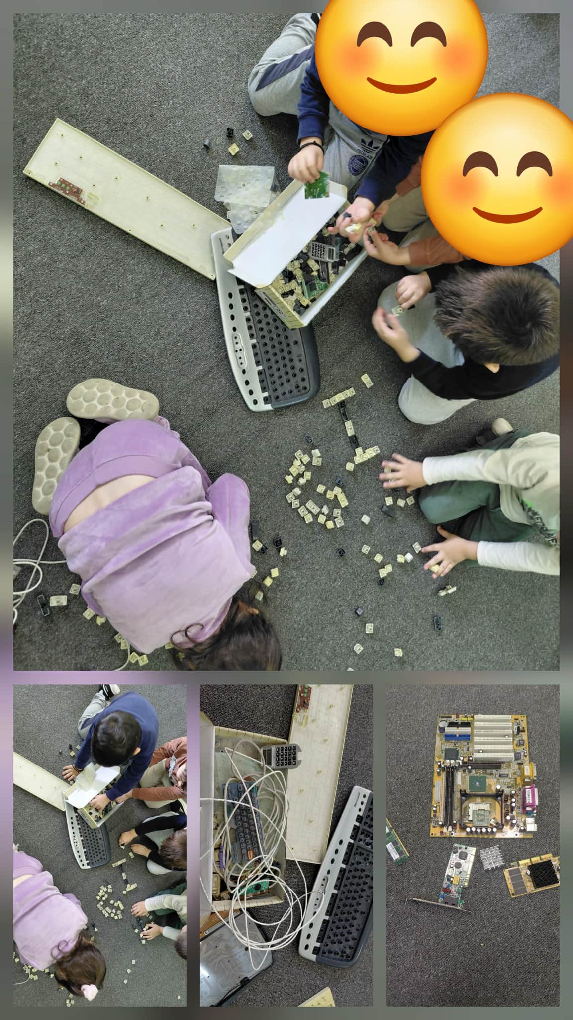 Πραγματοποιείται Έκθεση.Τα παιδιά δημιουργούν χρησιμοποιώντας παλιές συσκευές και εξαρτήματα τους.