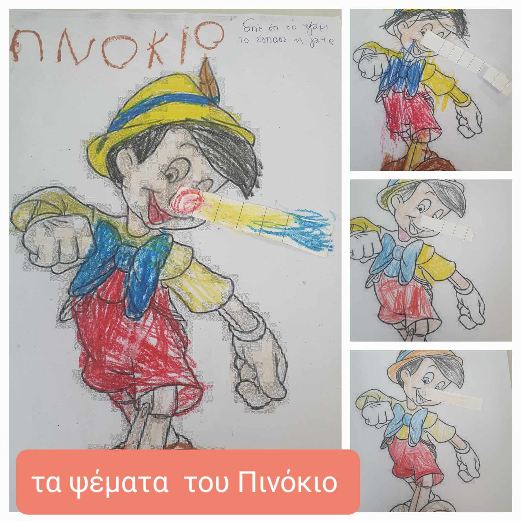 Ένας φίλος μας παρουσίασε τον Πινόκιο .Τον ζωγραφίσαμε και βάλαμε μύτη ανάλογη με τα ψέματα που έλεγε!