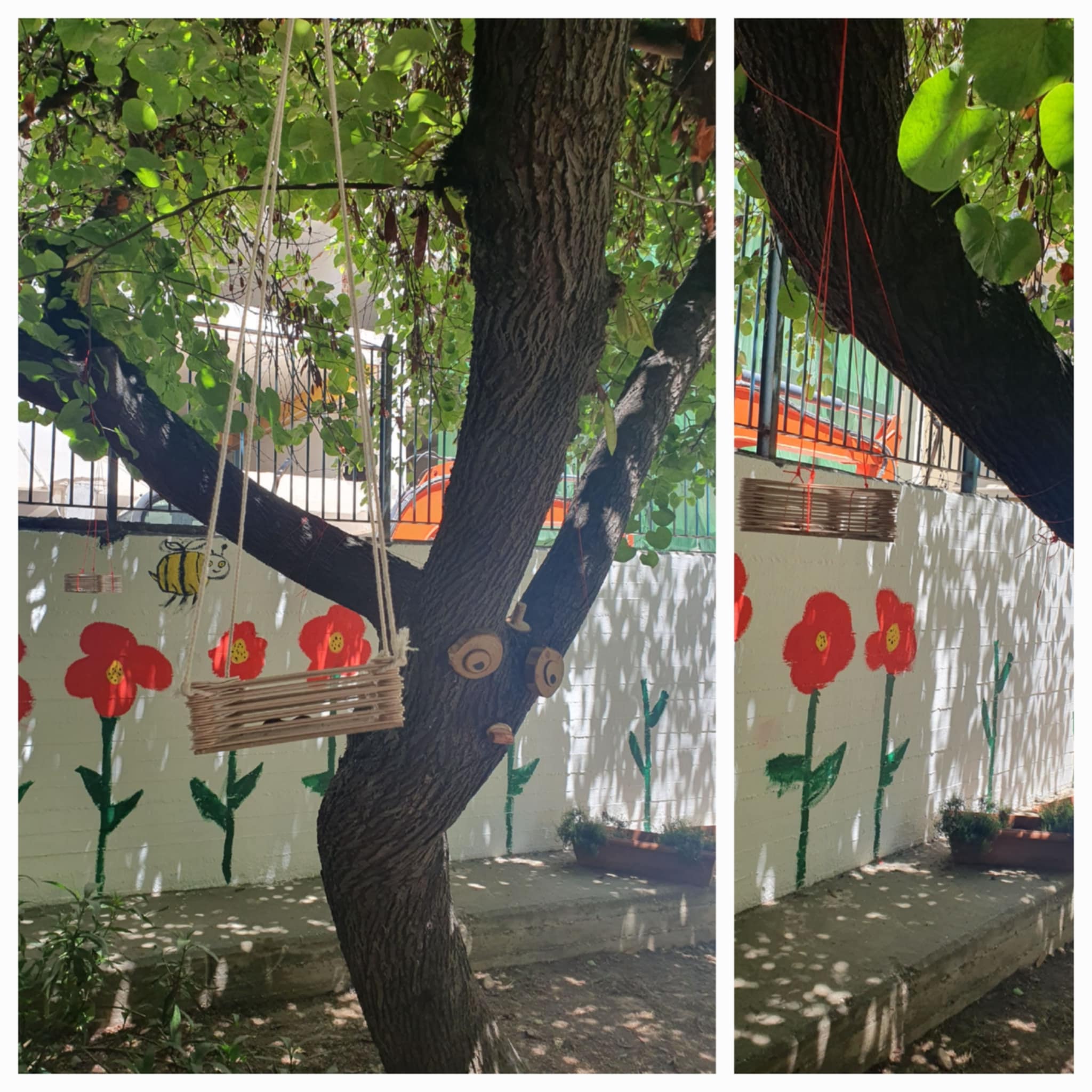 Αυτή η μεριά της αυλής μας είναι πόλος έλξης όλων των παιδιών του σχολείου καθώς  την επισκέπτονται για παιχνίδι και παρατήρηση  και οι παλιοί μας φίλοι που τώρα πα΄νε στο συστεγαζόμενο Δημοτικό!