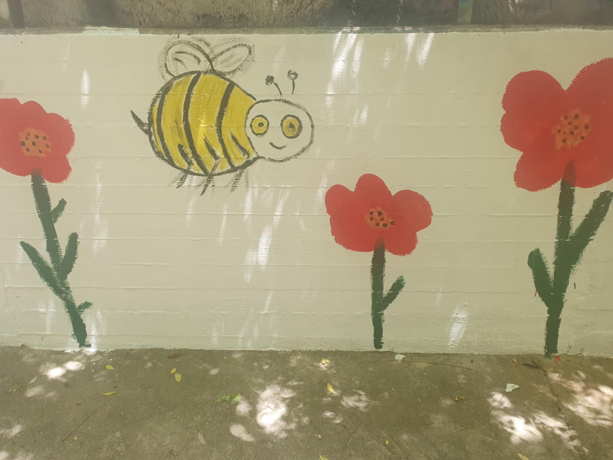 Ξεκίνησαν οι μικροί μας φίλοι να ζωγραφίζουν με μεγάλοι χαρά !Οι ζωγραφιές ολοκληρώθηκαν από τους μεγάλους και πραγματικά ο τοίχος έγινε πανέμορφος και λουλουδάτος!