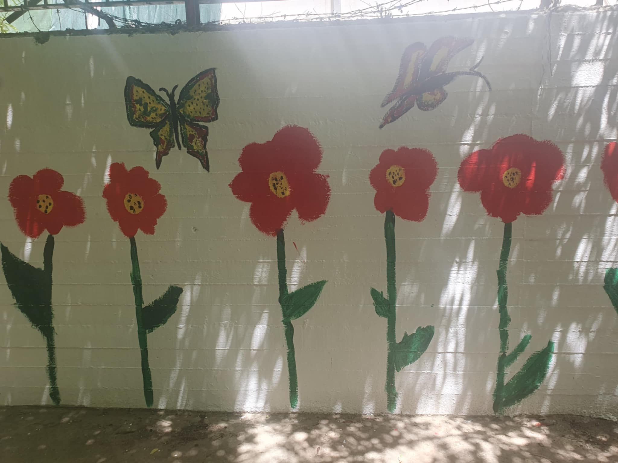 Καθώς τα παιδιά έπαιζαν στον κήπο παρατήρησα ότι ο κήπο ς τους θα ήταν πιο όμορφος αν ζωγράφιζαν και στον τοίχο λουλούδια και έντονα. Γρήγορα άρχισε η κινητοποίηση μικρών και μεγάλων ώστε να καταφέρουμε να υλοποιήσουμε την επιθυμία των παιδιών. Από τις Τεχνικές Υπηρεσίες του Δήμου έβαψαν τον τοίχο λευκό ώστε να ξεκινήσει η υλοποίηση της δράσης.
