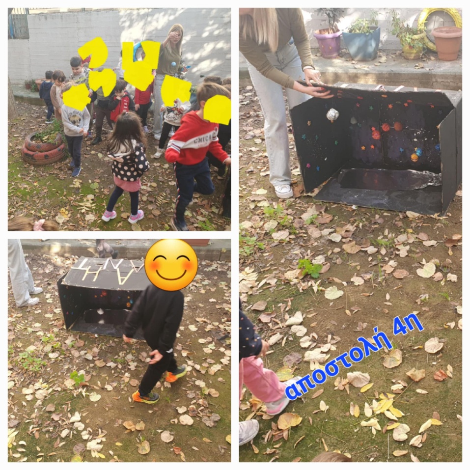 Όμως, το πλανητάριό μας δεν έπρεπε να μείνει μόνο στη δική μας τάξη – θέλαμε να το μοιραστούμε με όλα τα τμήματα και να προσφέρουμε σε όλους μια διαστημική εμπειρία. Έτσι δημιουργήθηκε η ιδέα για ένα συνεργατικό παιχνίδι: