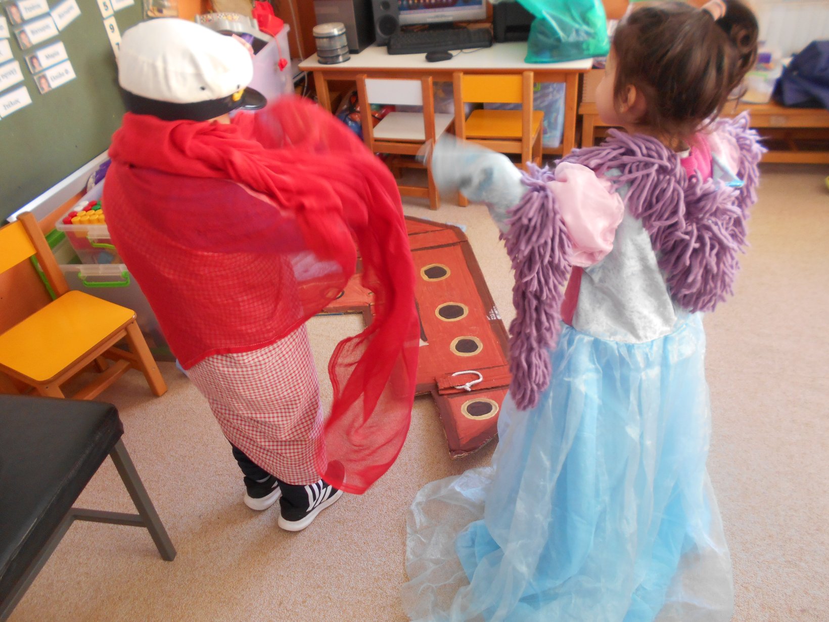 Παίξαμε παιχνίδια παντομίμας συγκρούσεων, με εναλλαγή ρόλων, δραματοποίηση, κουκλοθέατρο, εικαστικά.